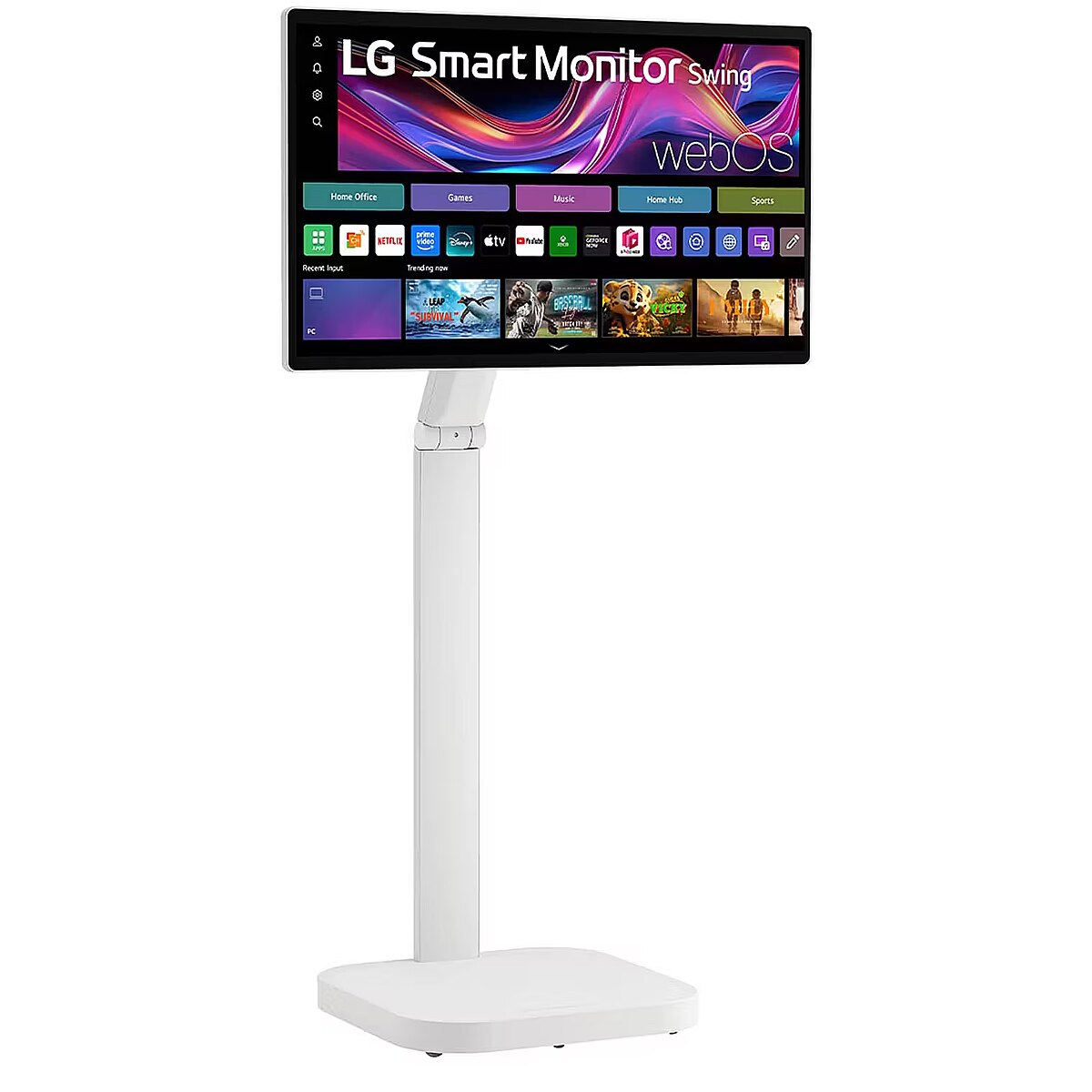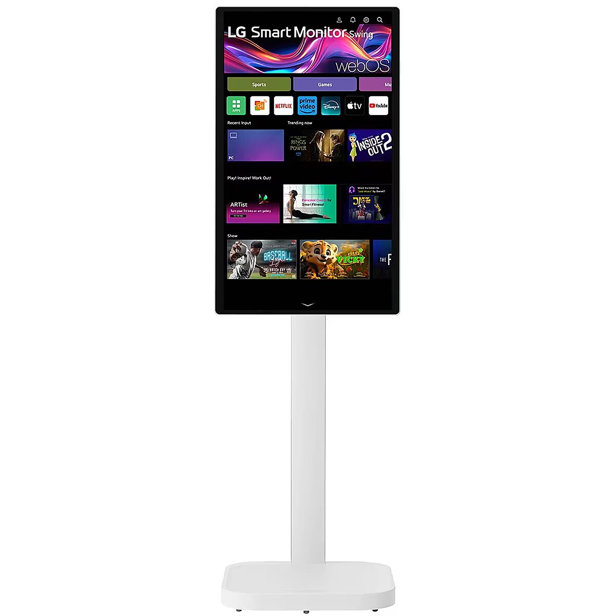 LongDesc - Seamless flexibility for work and playExperience powerful flexibility with LG Smart Monitor with Touchscreen, featuring a rolling stand for ideal adjustment to various angles and positions. Enjoy smooth touchscreen control, a large 31.5-inch display, and stunning 4K picture quality for work and entertainment.Lifelike images, at your touchImmerse yourself in vibrant color and detail with our 31.5-inch 4K UHD IPS display. The intuitive touchscreen offers effortless control, enabling swift access to adjustments. Enjoy clear images and accurate colors thanks to a wide 95% DCI-P3 color gamut and 350nits of brightness. Experience stunning clarity and lifelike images that bring your content to life.Rolling stand with a hidden adapterWith its sturdy rolling wheels, effortlessly move it wherever you need, all while enjoying smooth and stable mobility. Plus, the hidden adapter keeps cables neatly concealed, ensuring a clean and organized look.Flexibility powers productivityAdapt to any task or environment with numerous possibilities. Powered by webOS, you can manage home office tasks without a PC and enjoy a wealth of content, seamlessly balancing work and entertainment. Additionally, the intuitive touchscreen and flexible stand enhance productivity, offering effortless control and dynamic adjustments.Productivity hub with easy connectivityThree USB-C ports allow for display output, data transfer, and device charging (up to 65W), enabling support for your laptop, all at the same time over a single cable.Easy to optimize effortlessly with LG SwitchThe LG Switch app optimizes your monitor for both work and life. You can quickly navigate and select smart functions with the keyboard and mouse, while seamlessly switching between your PC and webOS using shortcut keys. Plus, you can easily split the display into up to 6 sections, change the theme design, or launch a video call platform with a mapped hotkey.Quick ControlDiscover the convenience of Quick Control on the LG Smart Monitor Swing, which provides easy access to menus through simple actions with a keyboard and mouse. It also enables seamless switching between PC and webOS using keyboard shortcuts.Mirror straight from your devicesEffortlessly share content from your smart device to our monitor with AirPlay 2* (for Apple devices), Screen Share (for Android devices). Connect instantly and enjoy a seamless viewing and audio experience on a larger screen with just a few taps.Home Office ready without a PCwebOS enables you to remotely access your PC and Cloud PC via Remote PC. This functionality lets you utilize various home office services, including video conferencing and cloud-based applications, all without a PC.Seamless channel surfingThanks to webOS, enjoy seamless access to a variety of content through apps like Netflix, Prime Video, Disney+, YouTube, Apple TV, and free LG Channels. Get personalized recommendations, explore apps like Sports, Game, and LG Fitness, and easily control everything with a remote or touch. The 3-side borderless design of the slim white body enhances immersion, while 5Wx2 stereo speakers deliver crystal-clear sound for the ultimate viewing experience.Effortless adjustments, adaptable to any viewOur smart monitor comes with a flexible stand featuring a torsion spring hinge, offering tilt, swivel, height, and Portrait Mode adjustments for effortless angle customization. The thick square-shaped base ensures stability, and the sleek gray-white tone blends seamlessly into any home or workplace.Jump right into the gameNo need for a gaming console - play games through LG Smart Monitor. Access cloud games directly from Home and swiftly connect to streaming apps for game content.Curated to your music tastesEnjoy customized music immersively with 5W x 2 stereo speakers. You can search for music easily and access recently played songs from your streaming services quickly. Also, it recommends popular songs based on your preference.Follow your sport teamsSupport your team with personalized service. It shows updated information on your favorite sports team based on your profile.Personalized home fitnessTransform your living room into a personal gym with LG Fitness. Enjoy a wide range of workouts, track your progress, and achieve your goals, all from the comfort of your couch.Bright intelligence in any lightBrightness Control detects light sources in your space and automatically adjusts the screen brightness for crisp and clear visuals, whether it's day or night.Come alive with brightness and contrastEnjoy visuals as they were meant to be seen, with Dynamic Tone Mapping adjusting brightness and contrast for optimal detail and realism. Movies and games come alive with rich immersion and consistent quality across all content.Easily control your appliancesThe ThinQ Home Dashboard makes life more convenient. Easily check and manage the status of your LG appliances and devices on one screen with the remote.Voice control with Magic RemoteWith the ThinQ app, you can be easily controlled remotely using voice commands via Alexa, ensuring that the smart monitor serves as more than just a display. It becomes a central hub for all your entertainment and productivity needs, elevating your overall multimedia experience. All of this requires only the Magic Remote.Boost business efficiency with a versatile monitorExperience the freedom to design your business. Its versatile features, adjustable stand, and expanded connectivity make it the perfect companion, seamlessly adapting to your needs in any work environment. Whether you're working from the office, a client site, or remotely, this solution empowers you to work smarter, faster, and more efficiently.