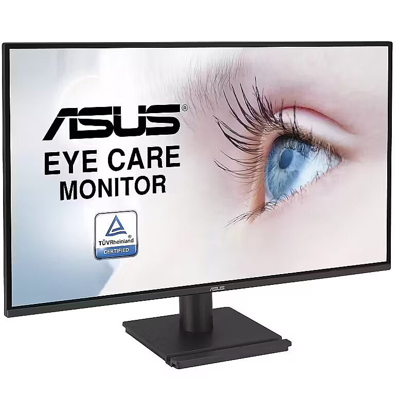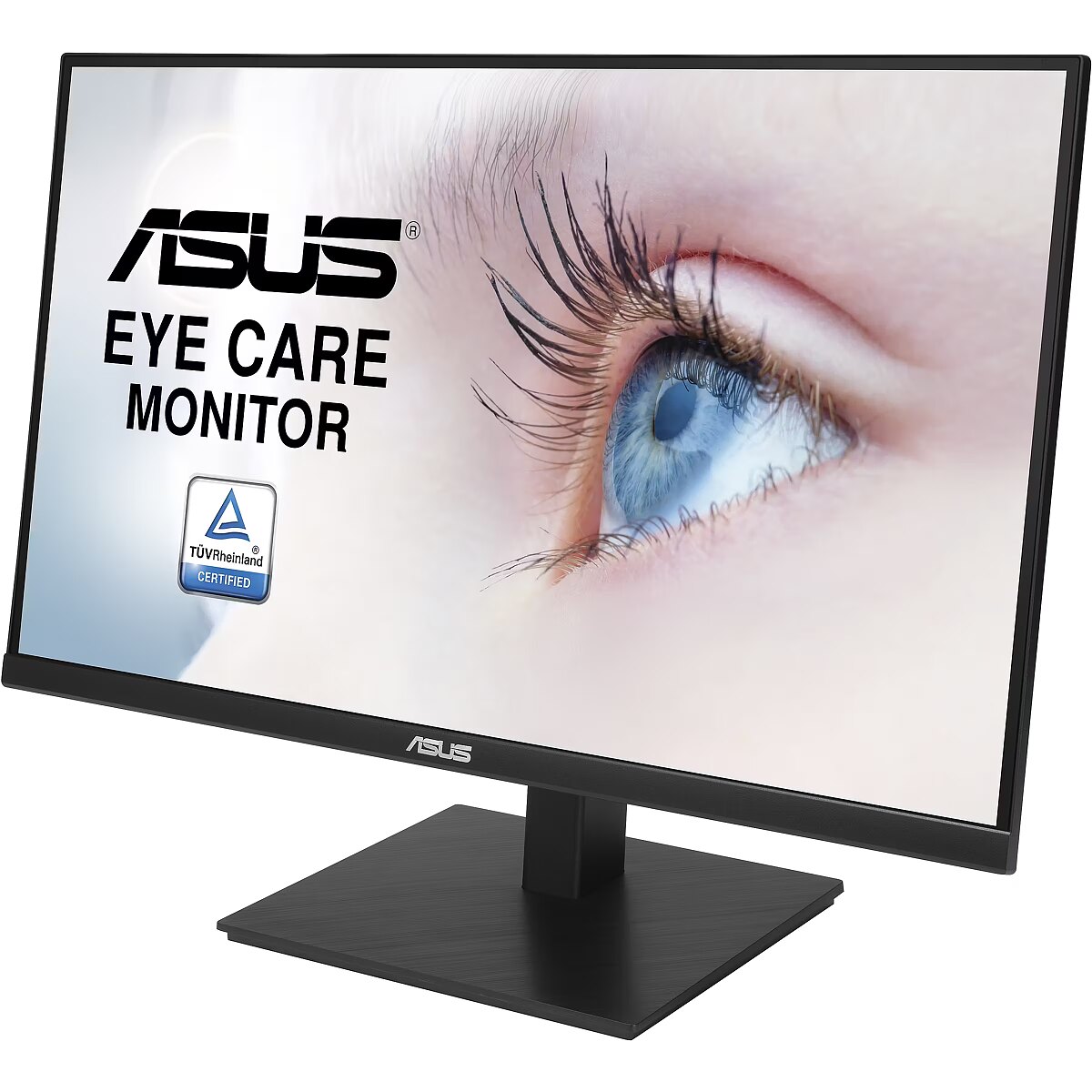 LongDesc - ASUS Eye Care MonitorAll-round protection for your eyesASUS VA27AQ is a 27-inch QHD (2560 x 1440) Eye Care monitor that features a frameless IPS panel for wide angle viewing to deliver incredibly sharp imagery and stunning video playback. Up to 75Hz refresh rate with Adaptive-Sync technology to eliminate tracing and ensure crisp and clear video playback. In addition, it also features TÜV Rheinland-certified Flicker-free and Low Blue Light technologies to ensure a comfortable viewing experience.Lifelike views with 178° wide view angleFrameless IPS panel provides 178° viewing angles, both horizontally and vertically, so you can enjoy its beautiful visuals from almost any direction.Hands-free ConvenienceThe handy design let you can place phone, name cards or any small items without placing it on the desktop, makes your workspace tidier and more organized.Expansive ConnectivityDisplayPort, HDMI and VGA allow you to connect your desktop / notebook and another device at the same time. So there‘s no need to frequently plug and change your connection. It also has pass-through port for the headphone jack input.ASUS DisplayWidget CenterASUS DisplayWidget Center is an app that allows you to tweak monitor settings with a mouse instead of using the buttons on the monitor. It works with both macOS and Windows.Built-in stereo speakers for multimediaWith two integrated speakers, VA27AQ enhances your audiovisual experiences, for limitless entertainment and multimedia enjoyment.Protect your eyes with ASUS Eye Care technologyASUS blue light filterFor viewing comfort and for protection from potentially harmful blue light, it offers intuitive and flexible with seamless adjustment that are easily accessed through the onscreen display menu.ASUS Flicker-free technologyIt's time to say goodbye to those tired, strained eyes. Flicker-Free technology helps reduce onscreen flicker, giving you a more comfortable, movie-marathon-ready environment. It is designed to minimize eyestrain, headaches and eye fatigue when you spend long, countless hours in front of the display.ASUS Power SyncStreamline and Declutter Your DesktopASUS Power Sync allows HDMI-connected devices to power on/off simultaneously with supported ASUS monitors, offering single-action control. Customizable via the MyASUS app with ASUS NUC*, this feature enhances device synergy for improved organization and productivity.Sustaining an Incredible FutureEnvironmental Certification*ASUS VA27AQ is stringently tested to meet the requirements of world-leading sustainability certifications. These tests include a comprehensive database of up-to-date criteria, independent verification, and a structured system for continuous improvement.Eco-friendly PackagingASUS VA27AQ is FSC Mix-certified, thanks to its sustainable packaging are made of at least 80% recycled cardboard. ASUS has designed the packaging to minimize weight and volume, which helps conserve natural resources and allows more devices to be transported in a single shipping container.Reusable PackagingThe cardboard box can be cut into a smaller box to pack small items on your desk, such as cables, adapters, or other accessories. It also includes a foldable phone stand. This is a great way to reduce waste, save money on packaging materials, and create added benefits.Eco-friendly MaterialsExtensive research and development ensure ASUS VA27AQ is made from eco-friendly materials like 85% post-consumer recycled (PCR) plastics and components like mercury-free panels.