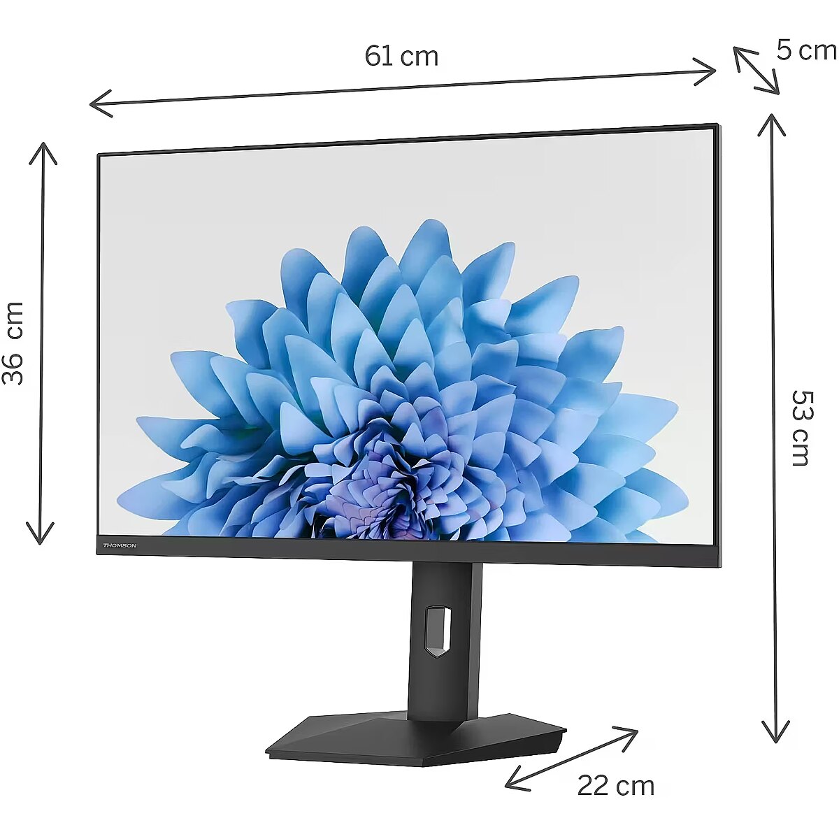 This Thomson M27FB5C15, 27" monitor with FHD 1920x1080 resolution ensures a clear and comfortable image for work, study, and everyday tasks. It combines a convenient form factor, modern design, and optimal visual features, making everyday use more productive and enjoyable. VA technology ensures a more uniform brightness distribution and less color inversion angle compared to TN. This allows for more accurately displaying details and more comfortably viewing videos and graphics from various viewing positions. The refresh rate of 75 Hz ensures stable images and comfortable work in office and home applications. This mode reduces eye fatigue during prolonged use, minimizes flickering, and ensures smooth motion. It is ideally suited for everyday tasks, web browsing, and multimedia viewing. Flicker-Free reduces the frequency flickering common to some brightness adjustment methods. This reduces visual stress and ensures a smooth, pleasant image for the eyes. The technology is particularly useful for working in darker rooms and during prolonged viewing sessions. Tilt technology allows for adjusting the screen's slope angle back and forth, ensuring the correct image placement in relation to the user's line of sight. This kind of adjustment helps reduce neck and eye strain, improves image perception, and makes long-term work at the monitor more comfortable. VESA wall mount allows you to install a monitor on the wall, adhering to a uniform industrial standard. It facilitates the choice of mount, increases the flexibility of workspace organization, and allows you to adjust the height and angle of placement, regardless of the desk or tripod. Built-in speakers provide sound playback without having to connect separate acoustic systems, reducing the amount of equipment in the workplace. They provide basic audio signals for video conferencing, system announcements, and multimedia. This solution enhances convenience and reduces the number of additional cables. D-Sub is an analog interface that ensures monitor compatibility with various video signals. It allows the use of a monitor with older devices without adapters, maintaining a stable image. D-Sub makes the device universal for various generation operating systems, ensuring correct graphics transmission and minimal distortions. HDMI provides video and audio transmission with a single cable, which enhances connection stability and reduces the risk of interference. The interface reduces the number of connections and maintains the integrity of the digital signal. HDMI supports modern formats and ensures reliable operation with a wide range of devices. The monitor comes with a 3 year warranty