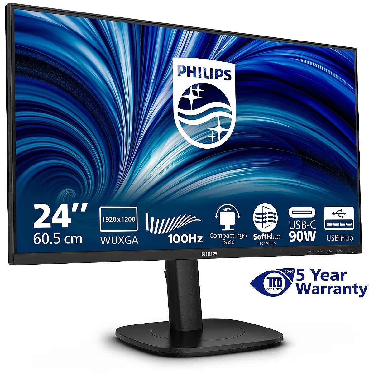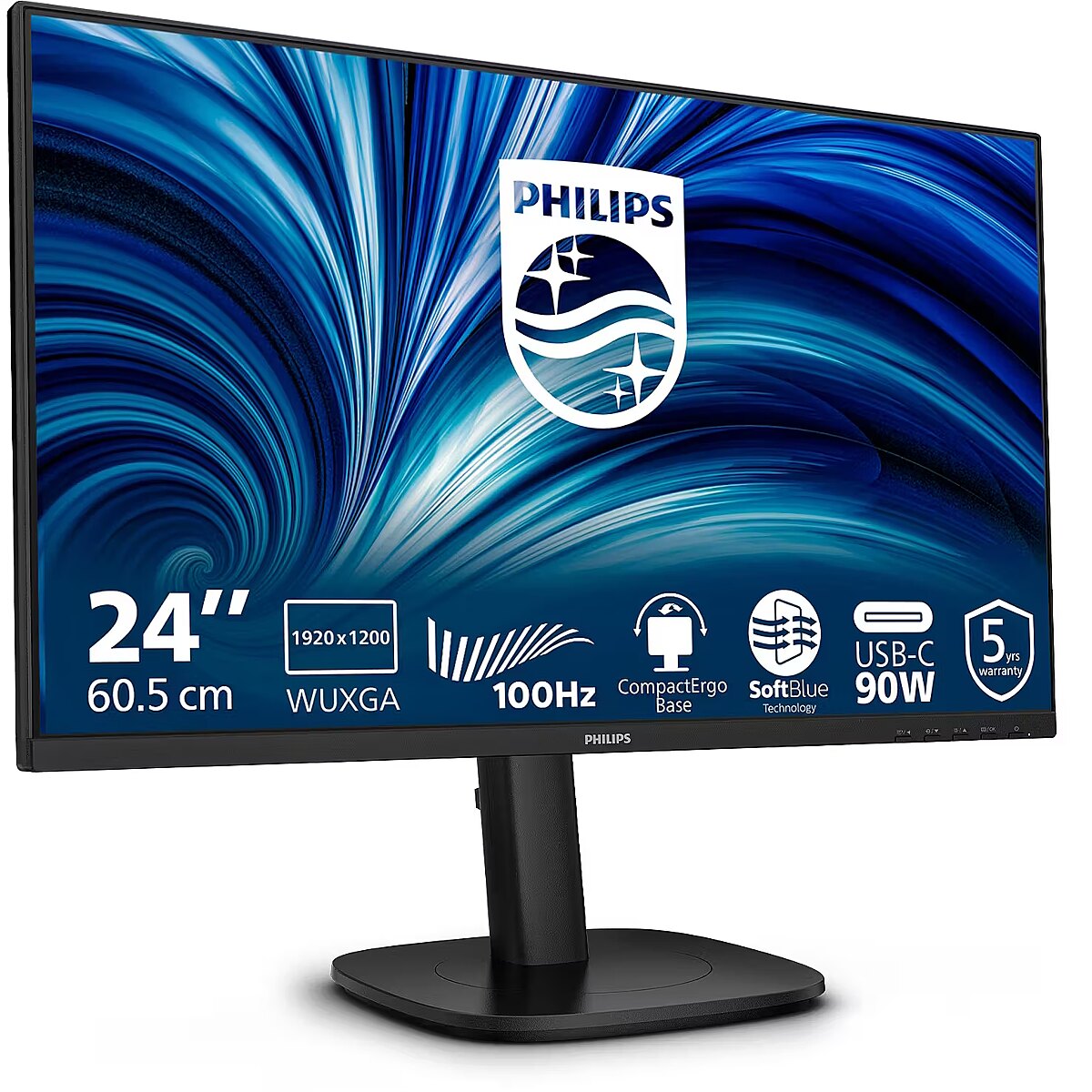 LongDesc - This Philips WUXGA (1920 x 1200) 16:10 monitor is equipped with an IPS panel for wide viewing angles. The 100 Hz refresh rate ensures smooth performance. It features SoftBlue technologies to reduce eye strain and support all-day productivity.