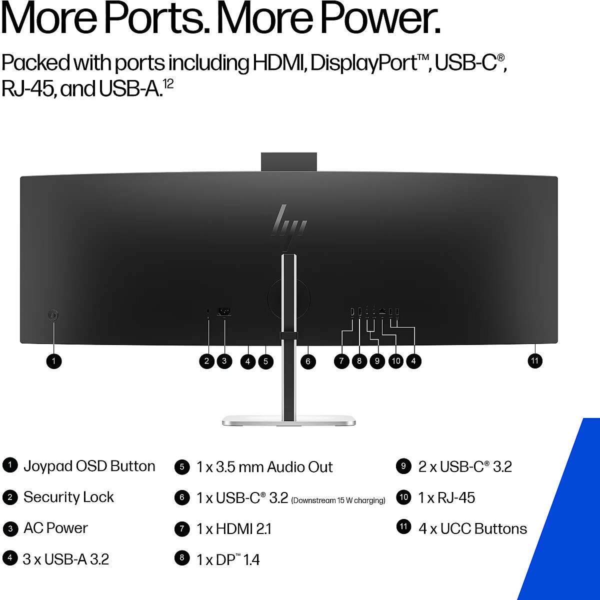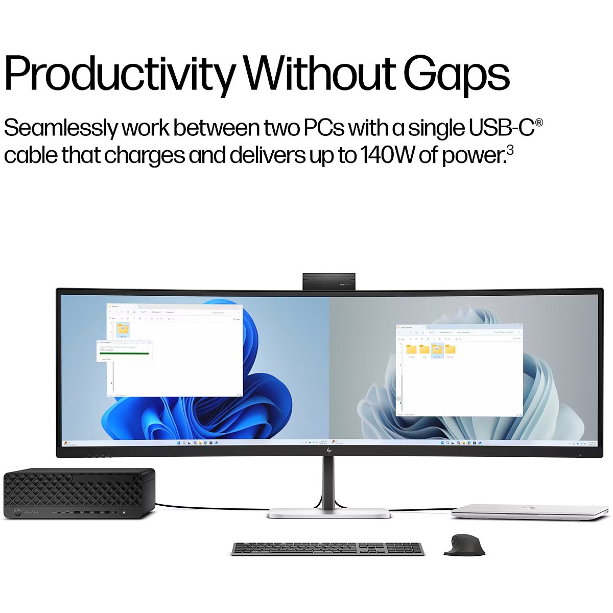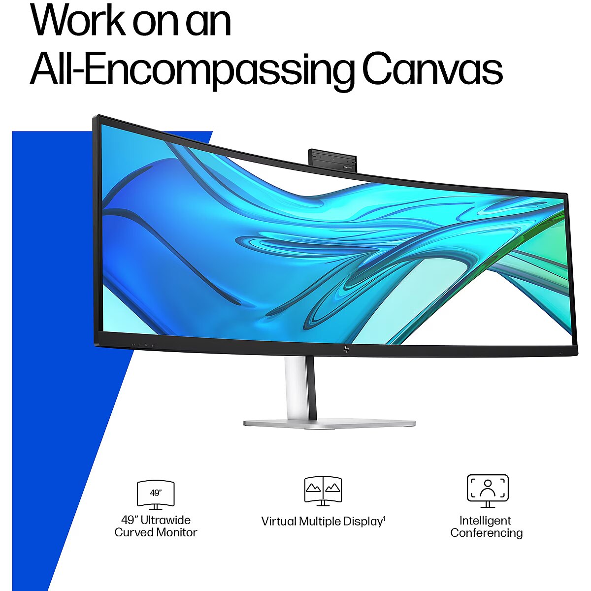 LongDesc - The massive canvas for the multitasking maestroSee more, do more, faster with one immersive canvas that supports up to two devices simultaneously for seamless edge-to-edge multitasking with the HP Series 5 Pro 49" DQHD Conferencing Monitor. Integrate AI conferencing and ecosystem connectivity with this ultrawide command center.