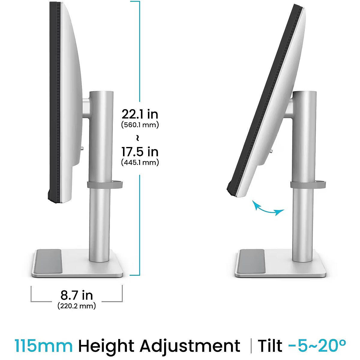 Tilt technology allows for adjusting the screen's slope angle back and forth, ensuring the correct image placement in relation to the user's line of sight. This kind of adjustment helps reduce neck and eye strain, improves image perception, and makes long-term work at the monitor more comfortable.