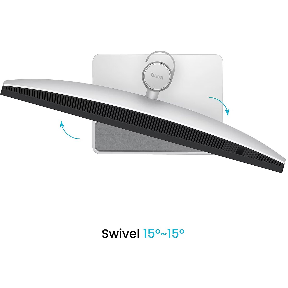 The Swivel technology allows the monitor to be rotated left and right around the vertical axis, ensuring precise screen positioning in relation to the user. Such a design improves the viewing angle, reduces neck strain, and makes the workspace more comfortable for collaboration or material demonstration.