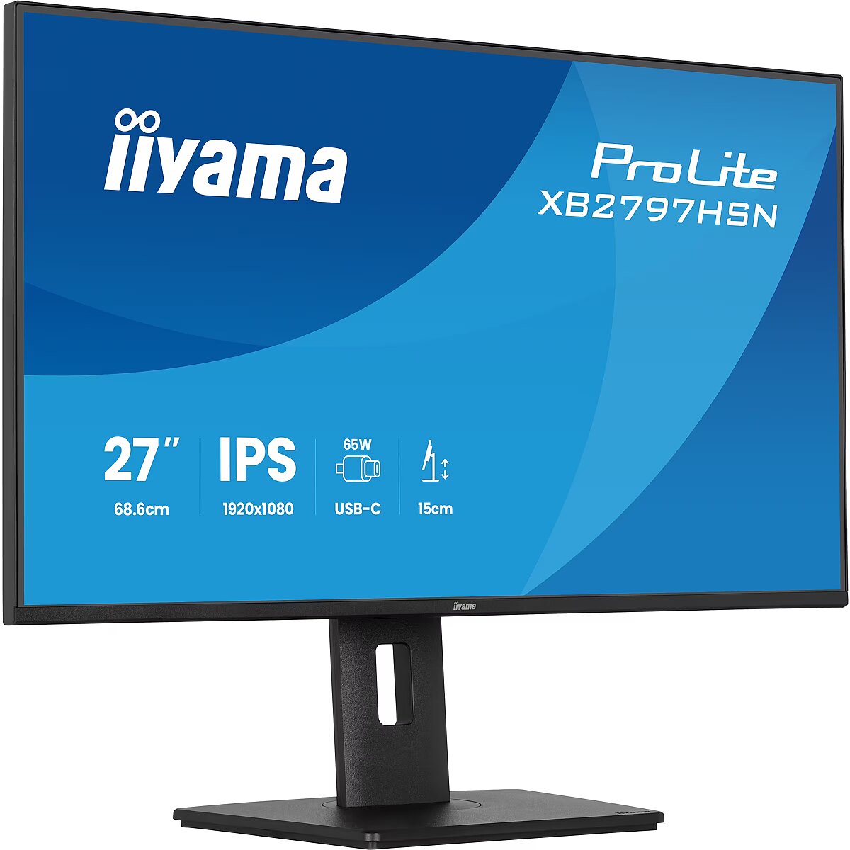 LongSummaryDescription - iiyama ProLite XB2797HSN-B1. Display diagonal: 68.6 cm (27"), Display resolution: 1920 x 1080 pixels, HD type: Full HD, Display technology: LCD, Display surface: Matt, Native aspect ratio: 16:9, Viewing angle, horizontal: 178°, Viewing angle, vertical: 178°. Built-in speaker(s). Built-in USB hub, USB hub version: 3.2 Gen 1 (3.1 Gen 1). VESA mounting, Height adjustment. Product colour: Black