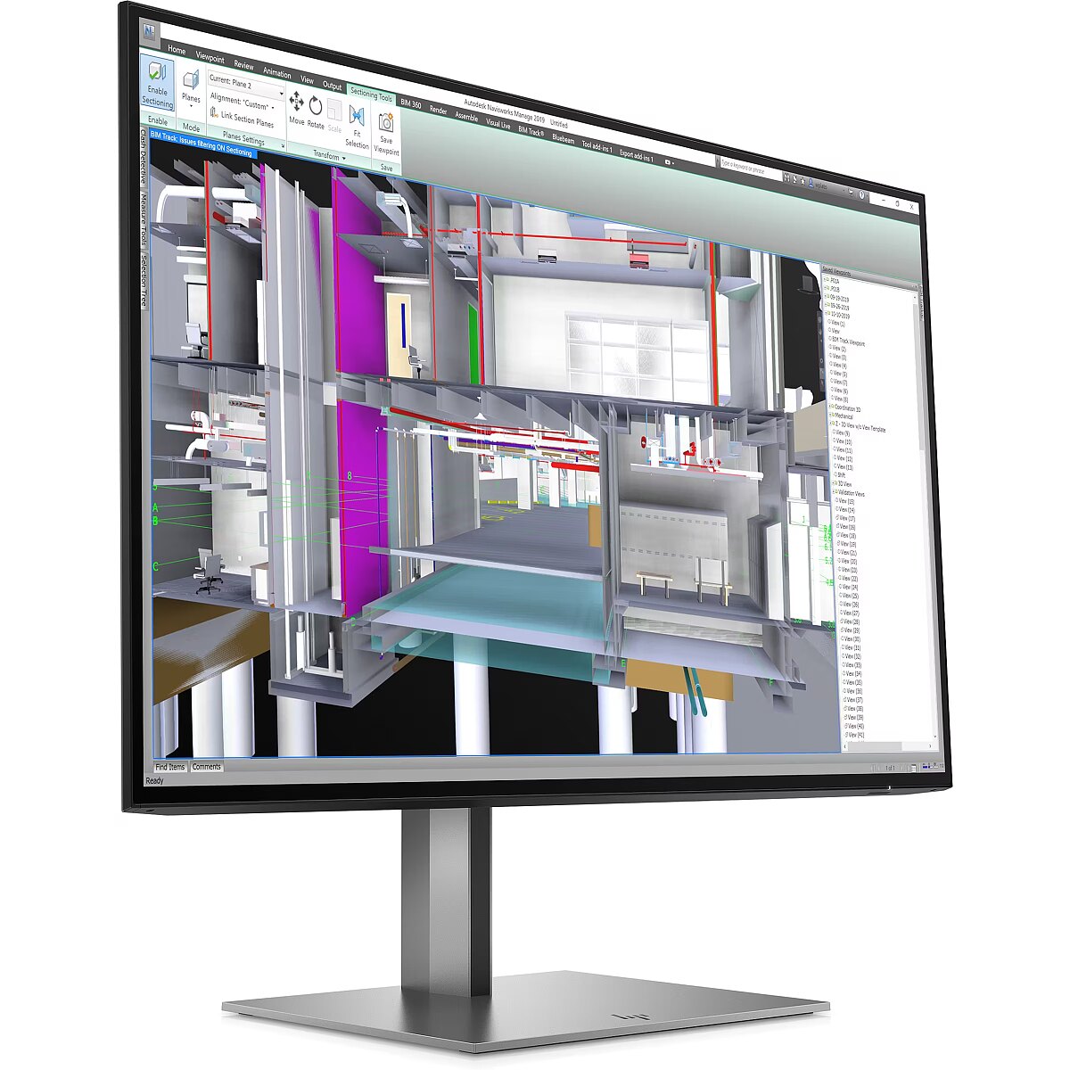 The Swivel technology allows the monitor to be rotated left and right around the vertical axis, ensuring precise screen positioning in relation to the user. Such a design improves the viewing angle, reduces neck strain, and makes the workspace more comfortable for collaboration or material demonstration.