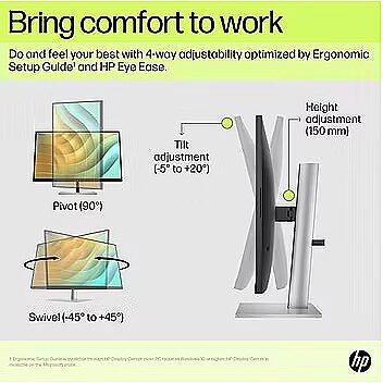 ProdDesc - HP E27u G5 QHD Charging Monitor - 27" 2560x1440 QHD 350-nit 75Hz AG, IPS, USB-C(65W/15W)/HDMI/DisplayPort Daisy-Chain, 3x USB-A, RJ-45 LAN, height adjustable/tilt/swivel/pivot, 3 years