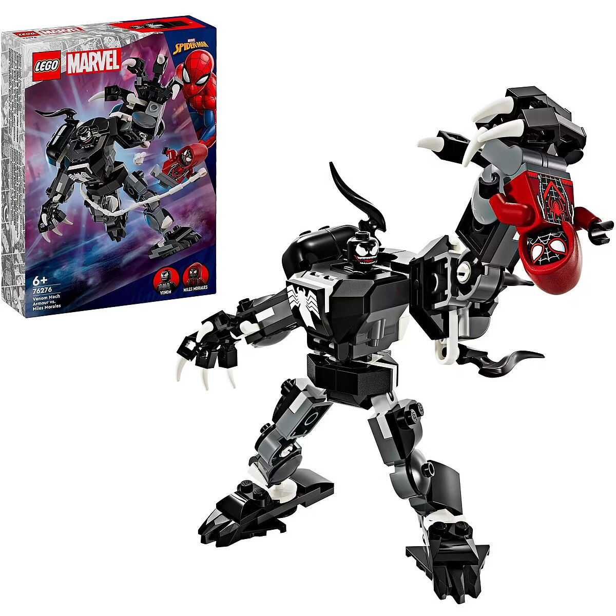 Technical_details - An epic battle between Venom Mech and Miles Morales - to build with LEGO bricks: This set from the Marvel Super Heroes series includes a fully posable, buildable Venom Mech. It has articulated arms, legs and clawed hands that can grip a LEGO minifigure . The mech's chest opens to place the included Venom minifigure in the cockpit. Miles Morales minifigure is also included - he is equipped with 2 web shooters and a flexible "web rope" that can be attached to the mech figure at multiple points. A great set for superhero fans ages 6 and up, containing a total of 134 pieces. Item no.: 100012412 Kind of construction toy EAN 5702017591377 Manufacturer no. 76276 Marvel Super Heroes series Parts 134 pieces Age recommendation from 6 years Target group school children Material: Plastic Warnings Warning: Not suitable for children under 36 months! Caution: Danger of suffocation due to small parts that can be swallowed!