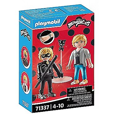 Technical_details - With the PLAYMOBIL sets from the Miraculous series, the magical world of the series around the superhero Marinette comes to life! With this set you can experience Adrien in two versions: as Marinette's schoolmate Adrien and as the superhero Cat Noir. He is supported by his Kwami Plagg, which can be attached to the top of the stand. The set also includes a children's bracelet to which a logo charm can be attached. With a total of seven different charms, you can create a great collection with your favorite characters from the series. Item no.: 100035551 Kind of construction toy EAN 4008789713377 Manufacturer no. 71337 Miraculous series Parts 11 pieces Contents/equipment figures: 1x Adrien, 1x Cat Noir, 1x Kwami Plagg. Accessories: 1 stand, 1 stick, 1 bracelet with charm Age recommendation from 4 years to 10 years Target group kindergarten children, school children Material: Plastic Warnings Warning: Not suitable for children under 36 months! Caution: Danger of suffocation due to small parts that can be swallowed!