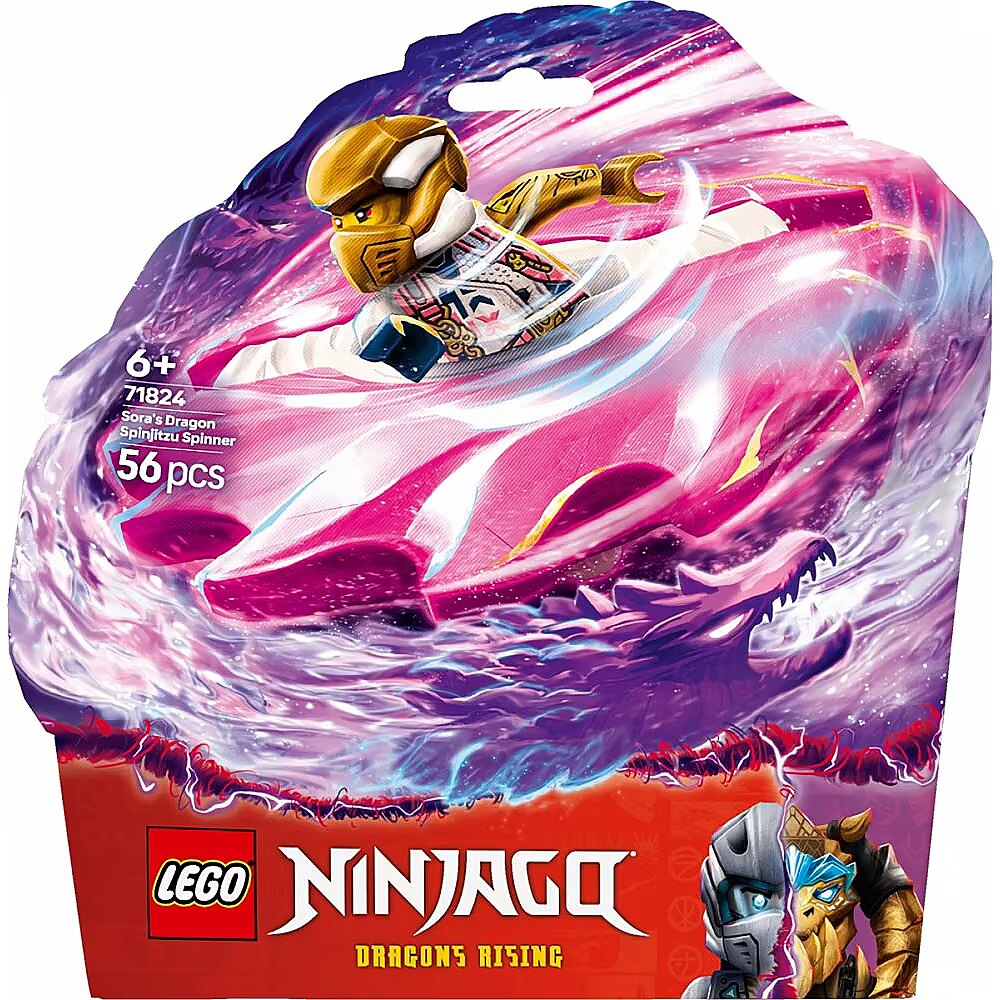 The rest of the LEGO NINJAGO range of building sets for kids and battle toys includes mechs, dragons and temples so fans can role-play awesome ninja action. Each ninja playset can be created with the LEGO Builder app, which guides you and your child on an easy and intuitive building adventure.     LEGO NINJAGO action toy for kids Boys and girls aged 6 and up can play out action-packed scenes from season 3 of the NINJAGO Dragons Rising TV show with Soras Dragon Spinjitzu Spinner     Fast-paced spinner toy Push the launchers button to unleash Soras Dragon Spinjitzu Spinner into a rapid spin and watch as 2 power elements possibly fly off when it hits its target     2 NINJAGO minifigures This building set for kids comes with Sora, who rides inside the Spinjitzu spinner, a villainous Dragonian Warrior, plus a small dragon critter model     Weapon accessories Each NINJAGO character has a weapon for enhanced play value: Sora comes with sword accessory and the Dragonian Warrior has his own sword accessory     Ninja gift idea for kids This small LEGO set provides a fun build-and-play experience and is a treat gift idea for ninja fans with a passion for imaginative play and adventure toys     Bigger ninja adventures Look out for more LEGO NINJAGO toys (sets sold separately) featuring dragons, temples and vehicles     A universe of LEGO NINJAGO toys This extensive collection of kids toys (sets sold separately) lets children escape into a fantasy world for imaginative play with their ninja heroes     Measurements This 56-piece Soras Dragon Spinjitzu Spinner LEGO building set for kids measures over 2 in. (6 cm) high, 4 in. (10 cm) long and 3.5 in. (9 cm) wide