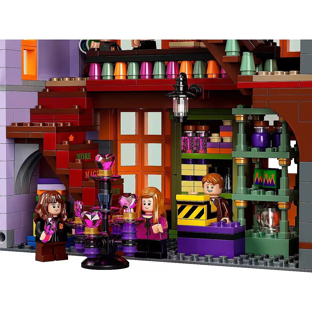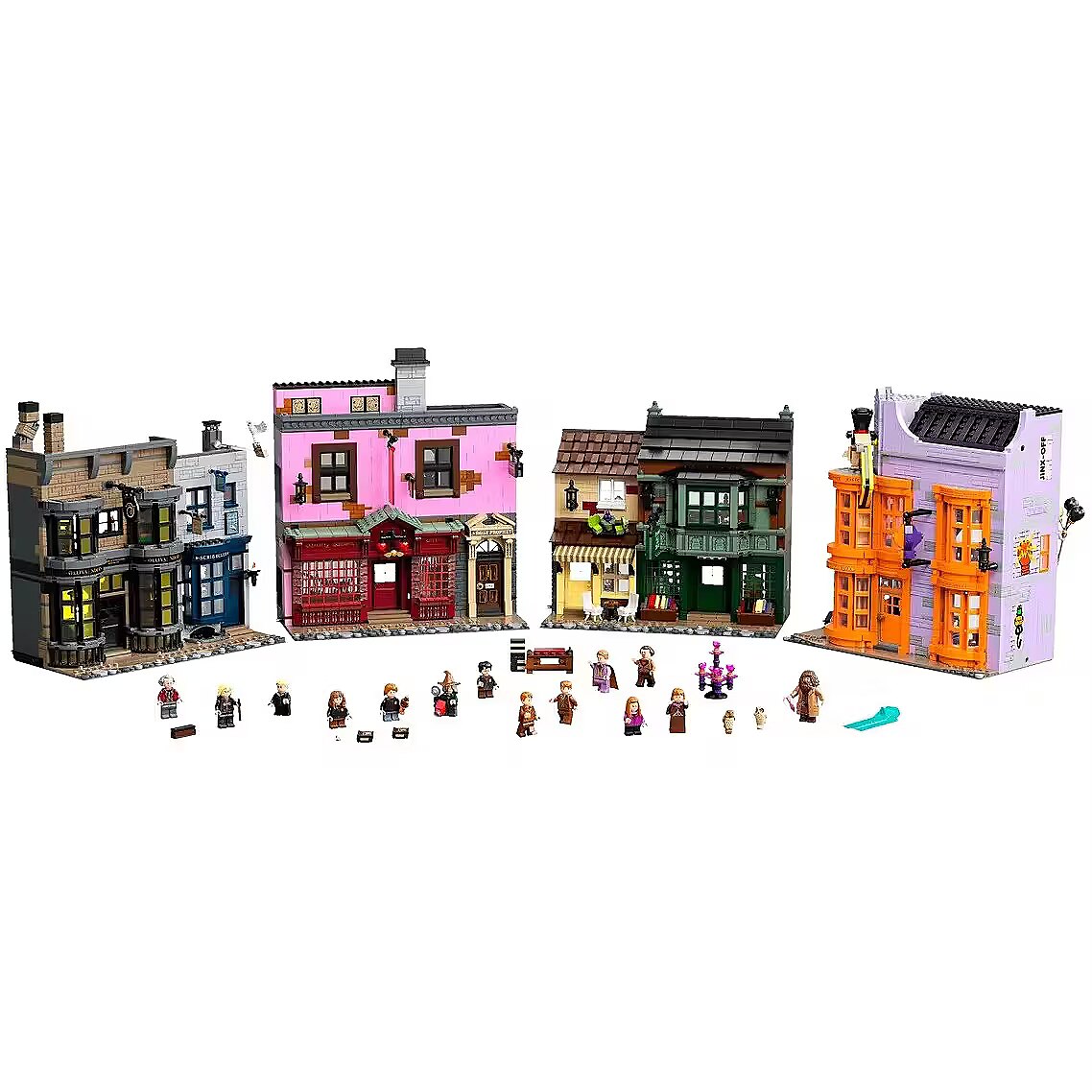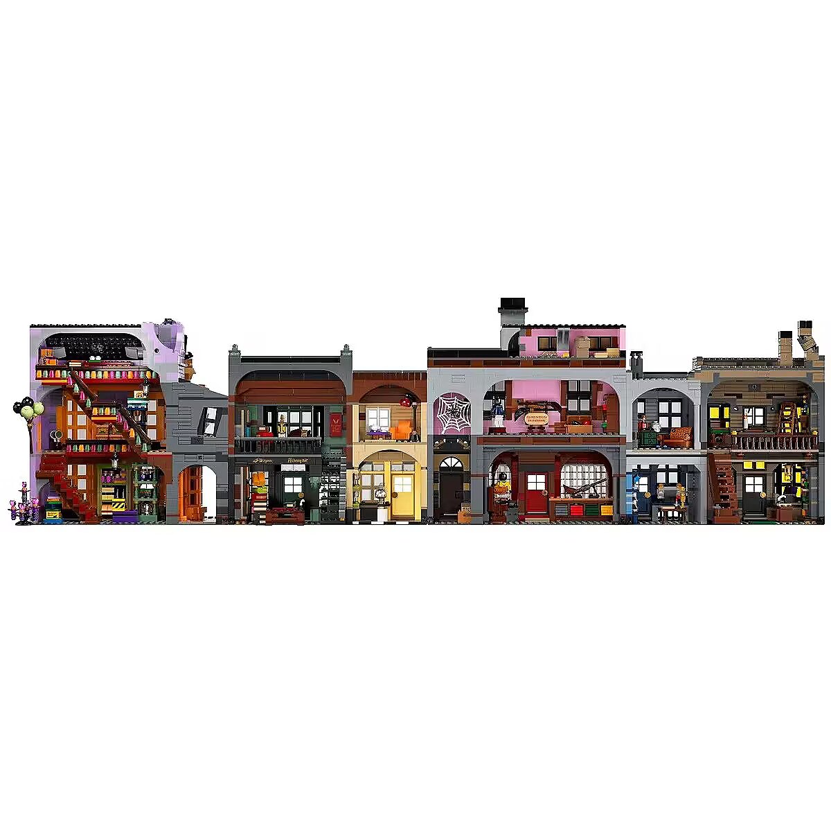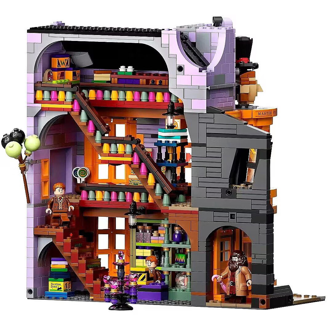 Fans of the Harry Potter universe can choose from a wide range of LEGO sets that encourage creative play and building collectible models. This enormous LEGO Harry Potter Diagon Alley set (75978) lets fans aged 16+ build Londons most magical shopping street. The model features: Ollivanders wand shop Scribbulus stationery store Official Quidditch gear shop Florean Fortescues ice cream parlor Flourish and Blotts bookstore Weasleys Wizard Wheezes Entrance to the Daily Prophet offices Realistic accessories and minifigures of famous Harry Potter characters allow you to create a lively model that can be endlessly modified and expanded with new stories. Perfect gift for Harry Potter fans and LEGO enthusiasts