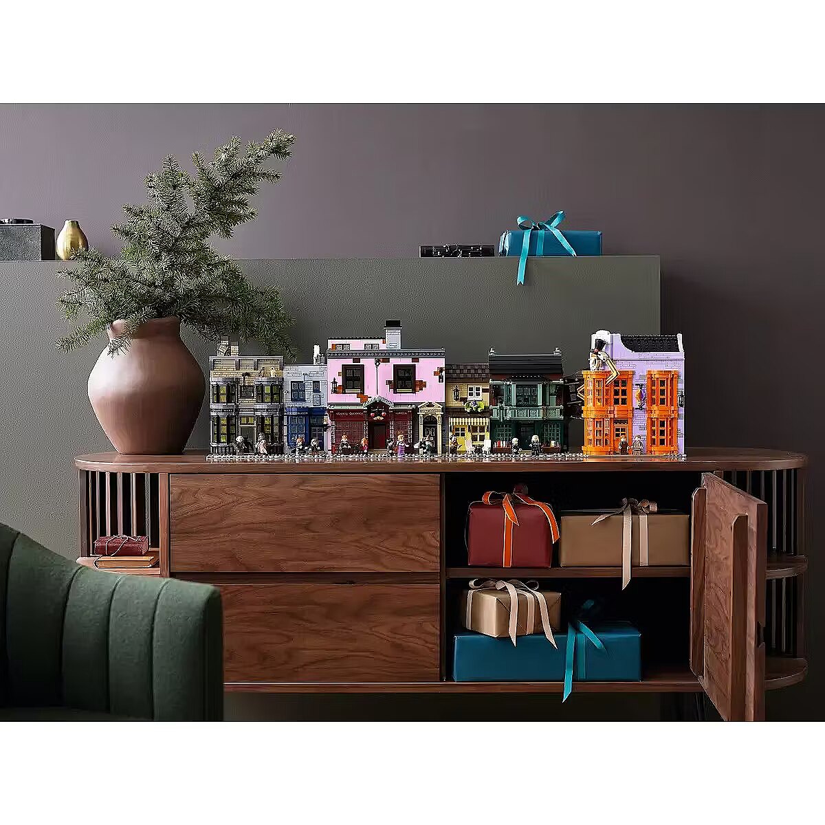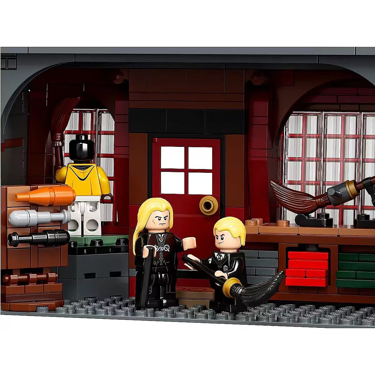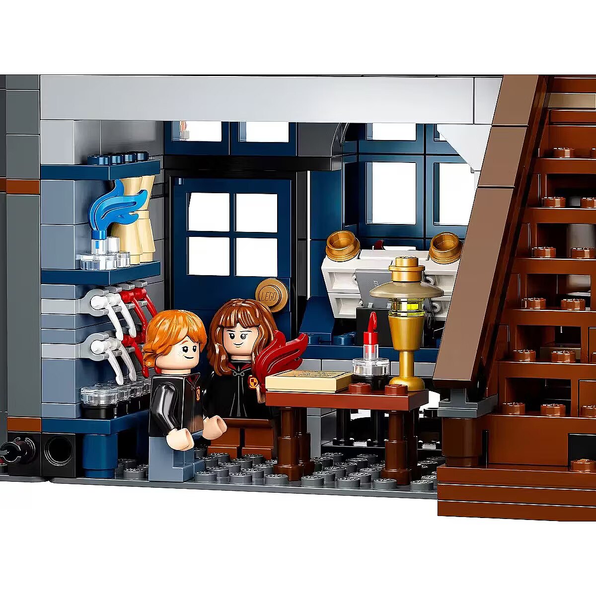 This impressive model, over a meter wide, captures the scale and atmosphere of the place where the magical world does all its essential shopping. Beautiful facades hide incredibly detailed interiors with fascinating features and familiar characters. You can see wands at Ollivanders, have Gilderoy Lockhart sign a book at Flourish and Blotts, pick up a love potion at Weasleys Wizard Wheezes, browse writing supplies at Scribbulus, check out official Quidditch gear, enjoy ice cream at Florean Fortescues, and visit the Daily Prophet offices. Collector-worthy building experience