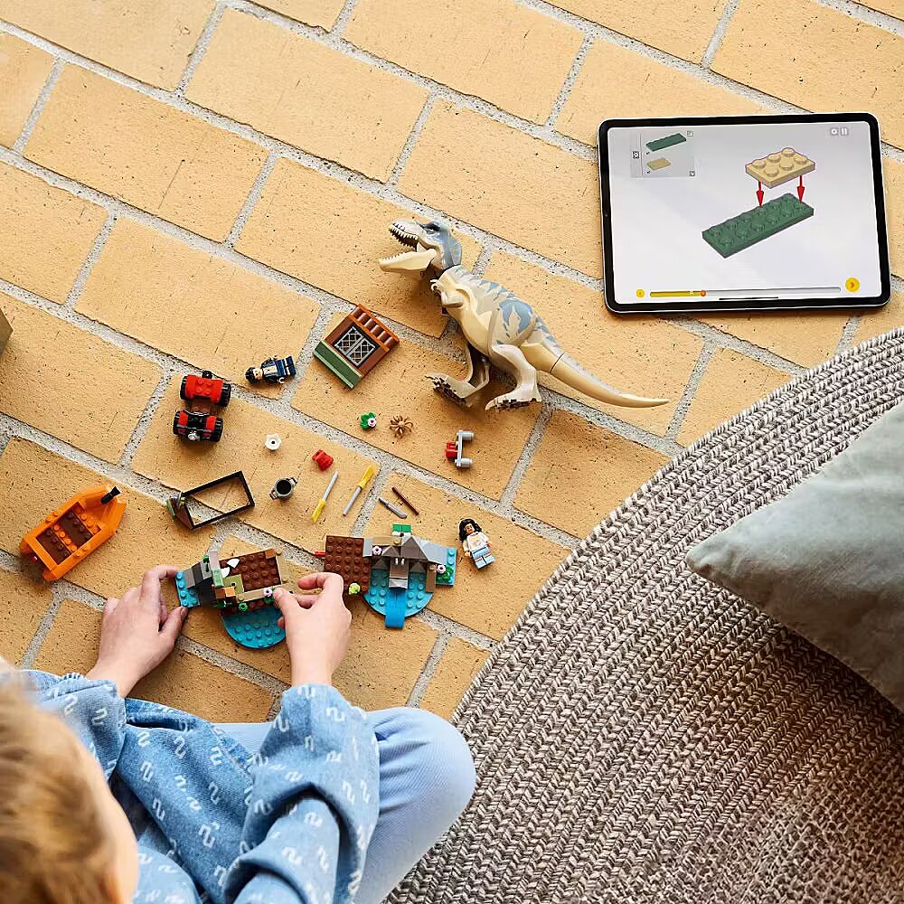 Description - Ucieczka rzeką przed tyranozaurem Dzięki temu szczegółowemu zestawowi LEGO Jurassic World Ucieczka rzeką przed tyranozaurem (76975) dzieci i fani filmów w wieku od pięciu lat mogą odegrać ekscytującą scenę z filmu Jurassic World Rebirth lub wymyślać własne historie o dinozaurach.Ten łatwy do zbudowania zestaw zawiera formowaną figurkę tyranozaura z ruchomymi łapami, nogami, ogonem, głową i pyskiem, a także dwie minifigurki: Teresę Delgado i Xaviera Dobbsa. Ponadto obejmuje szopę, którą można "zniszczyć", wyrzutnię łodzi, łódź, quada i nie tylko. To świetny pomysł na prezent urodzinowy. Aplikacja LEGO Builder poprowadzi małe dzieci przez intuicyjną przygodę z budowaniem, pozwalając im powiększać i obracać modele w 3D, zapisywać zestawy i śledzić postępy. Ten zestaw rozwijający wyobraźnię to świetny pomysł na prezent na święta lub urodziny dla młodszych dzieci, które uwielbiają przygody i dinozaury ze świata Jurassic World. Można go łączyć z innymi zestawami LEGO Jurassic World (sprzedawanymi osobno), aby poszerzyć możliwości zabawy. Zestaw zawiera 199 elementów. Zestaw z tyranozaurem - podaruj fanom w wieku od pięciu lat ten szczegółowy zestaw Ucieczka rzeką przed tyranozaurem, który zapozna dzieci z uniwersum Jurassic World dzięki pełnemu akcji zestawowi konstrukcyjnemu Zabawka konstrukcyjna z dinozaurem - zawiera formowaną figurkę tyranozaura z serii LEGO Jurassic World z ruchomymi nogami, łapami, ogonem, głową i pyskiem, a także minifigurki Teresy Delgado i Xaviera Dobbsa, które zachęcą do odgrywania przygód Mnóstwo elementów z filmu - ten szczegółowy zestaw inspirowany filmem Jurassic World Rebirth zawiera szopę z pomostem i wyrzutnią dla łodzi, małą łódź, quada i wiele więcej Funkcje pobudzające wyobraźnię - ten zestaw ma funkcję wyrzutni łodzi, która umożliwia wystrzelenie pojazdu, aszopę można zniszczyć figurką tyranozaura (a następnie odbudować) Zestaw LEGO Jurassic World na prezent - rozwiń pasję dziecka do dinozaurów dzięki zestawowi, który świetnie sprawdzi się jako prezent urodzinowy lub świąteczny dla chłopców lub dziewczynek w wieku od pięciu lat Nowy sposób na budowanie - aplikacja LEGO Builder przeprowadzi dzieci przez intuicyjne budowanie. Mogą w niej zapisywać zestawy, śledzić postępy oraz przybliżać i obracać modele w 3D w trakcie budowania Rozwija kreatywność - zestawy LEGO Jurassic World zostały stworzone, aby pobudzić w dzieciach miłość do zabawkowych dinozaurów, zwierząt i przyrody, pomagając im rozwijać kreatywność i umiejętność opowiadania historii Wymiary szopy i pomostu - szopa wraz z pomostem i łodzią w tym 199-elementowym zestawie ma 8 cm wysokości, 20 cm szerokości i 14 cm głębokości