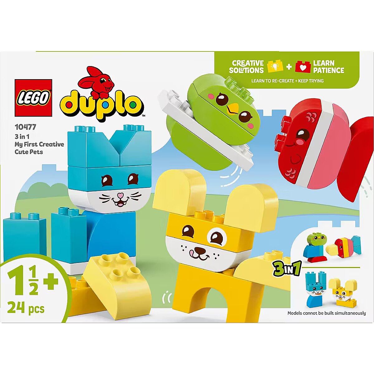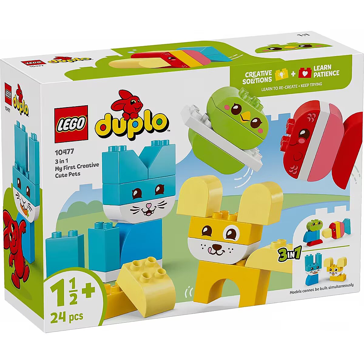 Description - Blocks DUPLO 10477 Creative Animals 3 in 1 Fill playtime with color and creativity with My First LEGO DUPLO Creative Pets 3in1 Set (10477). This adorable toy for girls and boys aged 18 months and up offers three different building options using the same set of bricks.