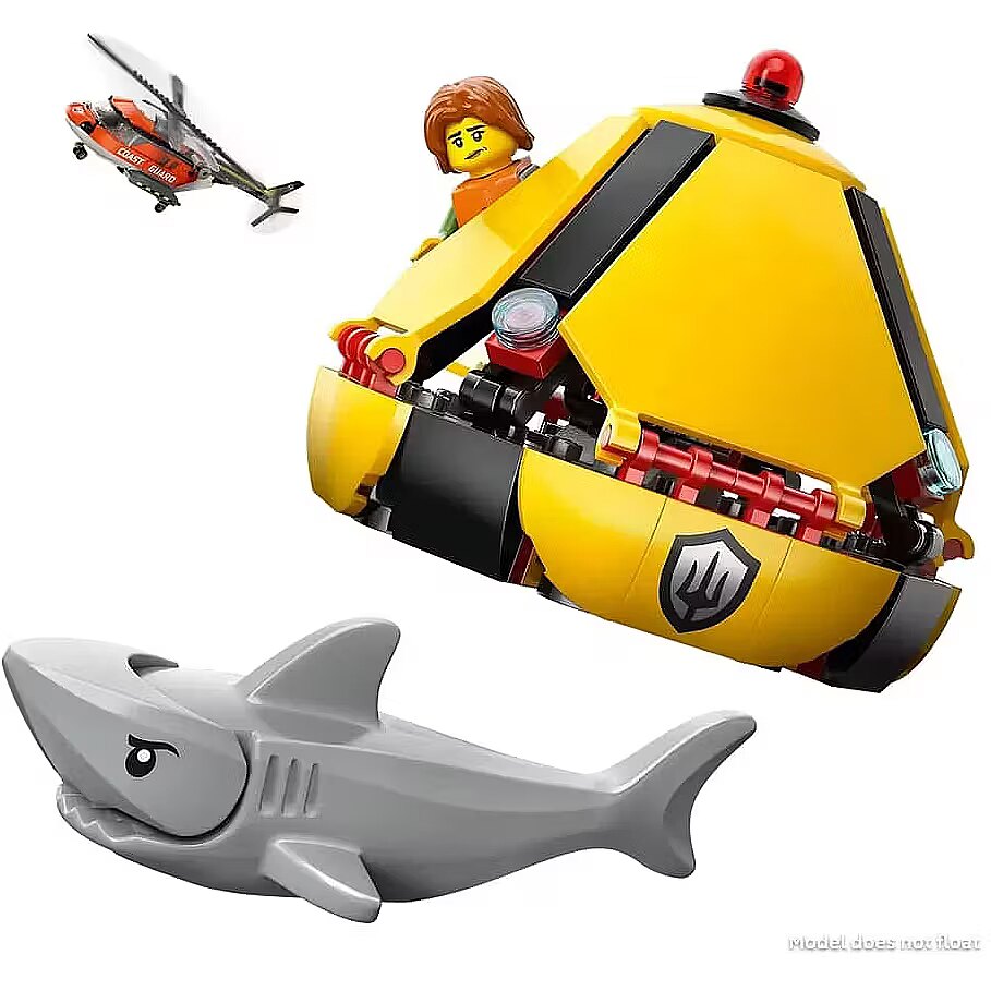 Description - Blocks City 60503 Coast Guard Helicopter The LEGO City Coast Guard Helicopter (60503) construction set is packed with authentic details for fans of role-play and rescue vehicles. This impressive red helicopter features rotating rotors, sliding side doors, a foldable rear ramp, and a detailed cockpit and fuselage. Kids can lower a crew member using the helicopters winch, and the set also includes a rescue capsule that can be opened to access its interior. Add a pilot, a person being rescued, two rescuers, and a shark for hours of creative play. This detailed construction set makes a great gift for boys and girls aged seven and up who love action-packed LEGO adventures. Combine it with other LEGO City sets (sold separately) for even more excitement. Play with the LEGO City Coast Guard Helicopter is even more fun with the LEGO Builder app, where kids can zoom in and rotate the model using 3D instructions, as well as save and track their building progress. The set consists of 551 pieces.