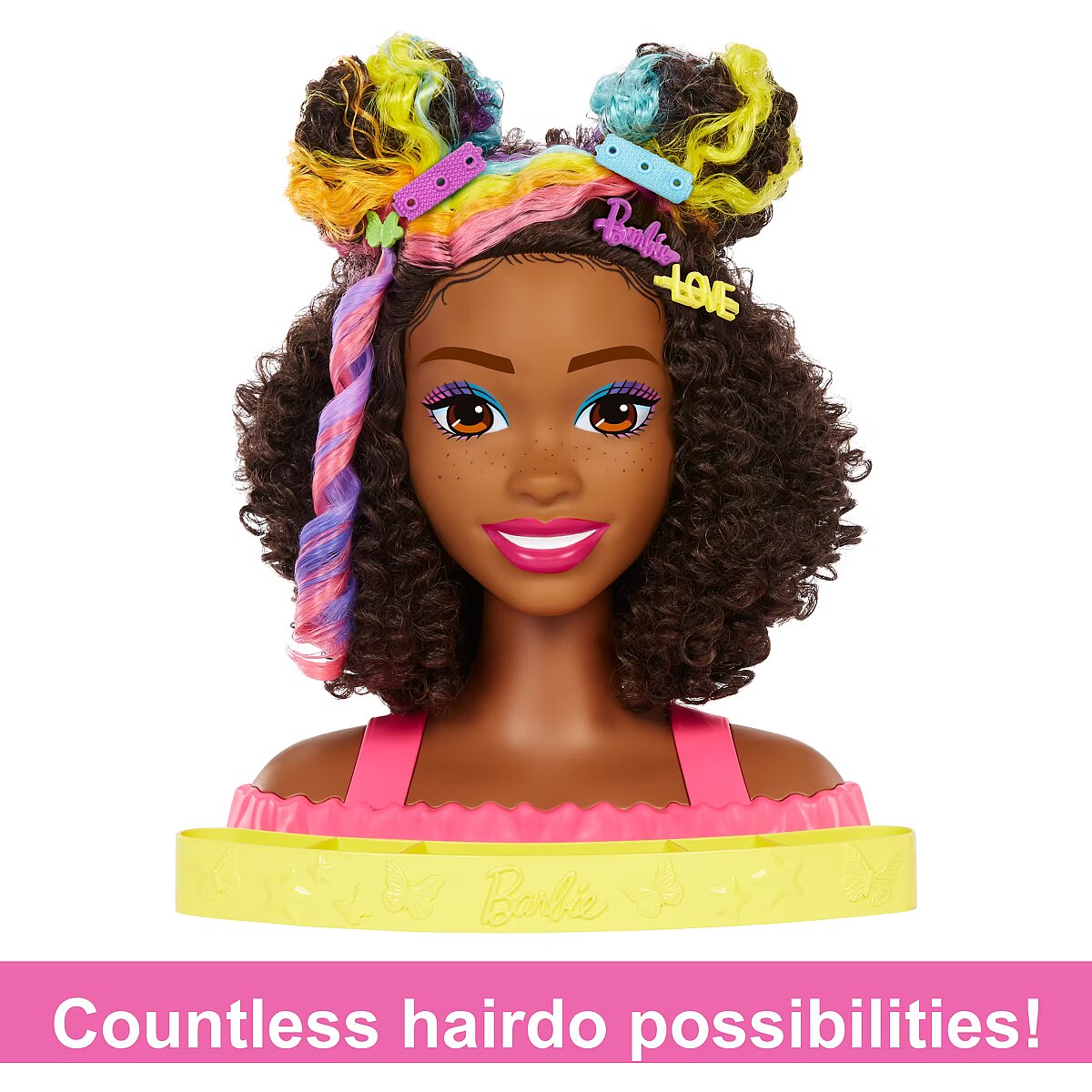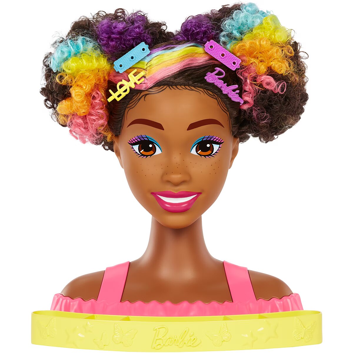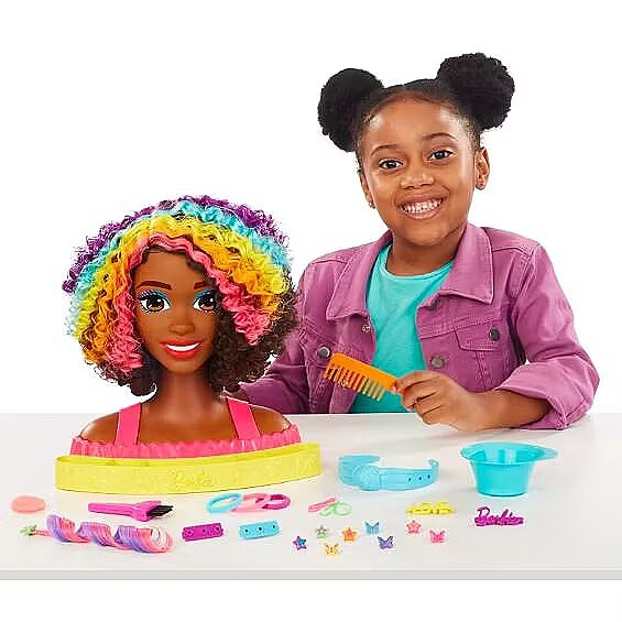 LongDesc - Anyone can be a hair stylist with Barbie Doll Deluxe Styling Heads! Colour change surprises add a touch of magic to playtime, while Colour Reveal accessories and customizable features allow for creative exploration. Choose from models with authentic hairstyles, and then let the fun begin with 22 styling pieces! Barbie Deluxe Styling Heads also come with convenient storage at the base so that kids can put away their accessories after playtime is over! Each sold separately, subject to availability. Colours and decorations may vary.