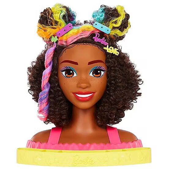 Description - With Barbie Styling Heads, everyone can be a hair stylist! The colour-changing elements add a magical dimension to the fun and the accessories let your creativity run free. Choose from a variety of models with unique hairstyles and plenty of styling elements. The sets also include a convenient storage space in the base of the head, so that all the accessories are easy to store away when playtime is over. Sold separately, subject to availability. Colours and decorative elements may vary.