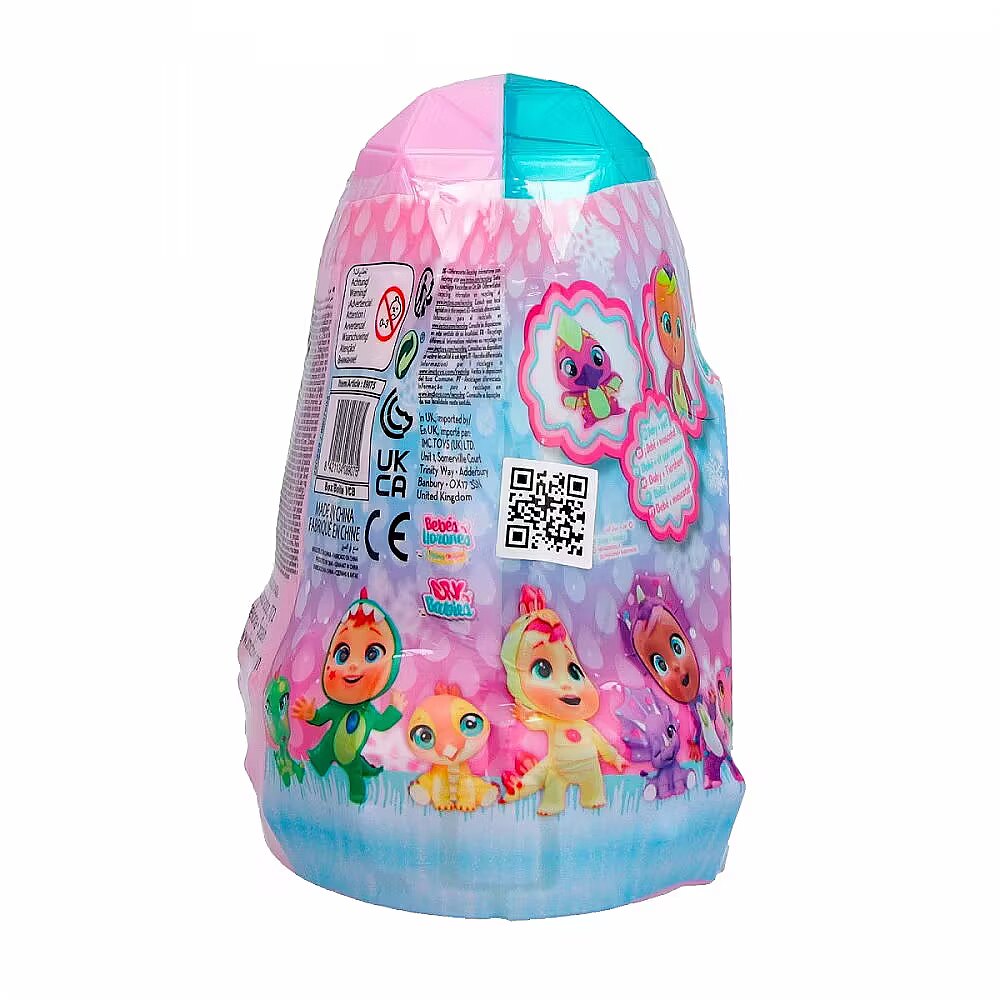 Security - IMC089075 - CRY BABIES MAGIC TEARS ICY WORLD DINOS - 2 Figures Mix WARNINGS! Not suitable for children under 3 years of age. Contains small parts that may be swallowed. Choking hazard. Keep the packaging as it contains important information. Due to technical improvements, the product may differ from the one shown in the illustration. Read the instructions before use and keep them for future reference. Before giving the toy to a child, remove all fastening and securing elements used during transport (plastic parts, labels, wires, etc.). Illustrations are for reference only. The operation and details of the products shown may differ from the actual product. The toy requires water to cry. Adult supervision is required. Made in China.