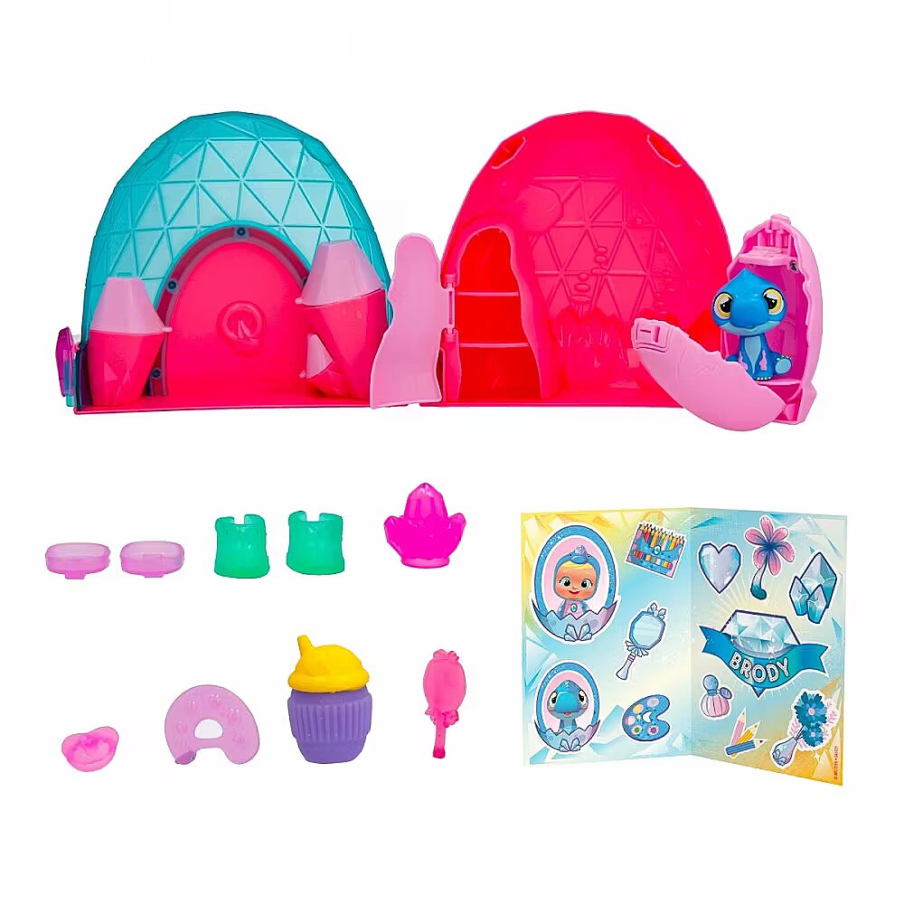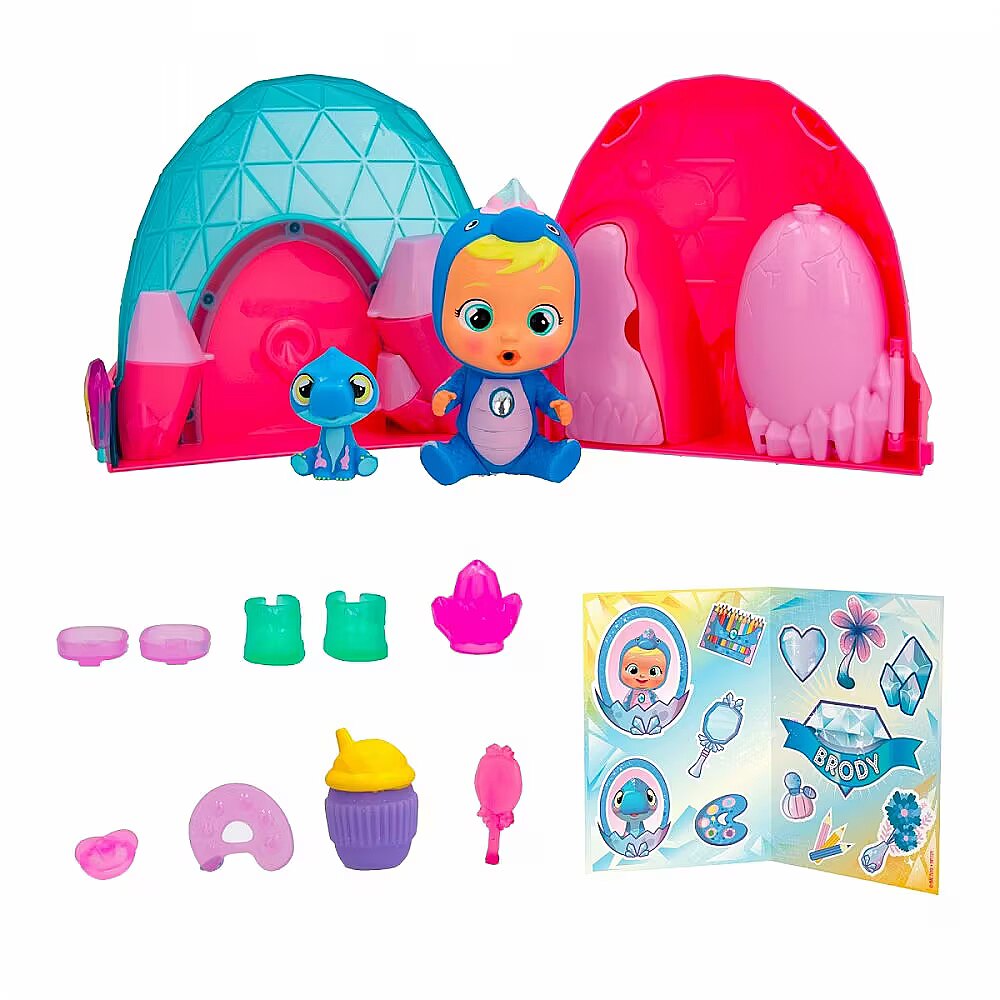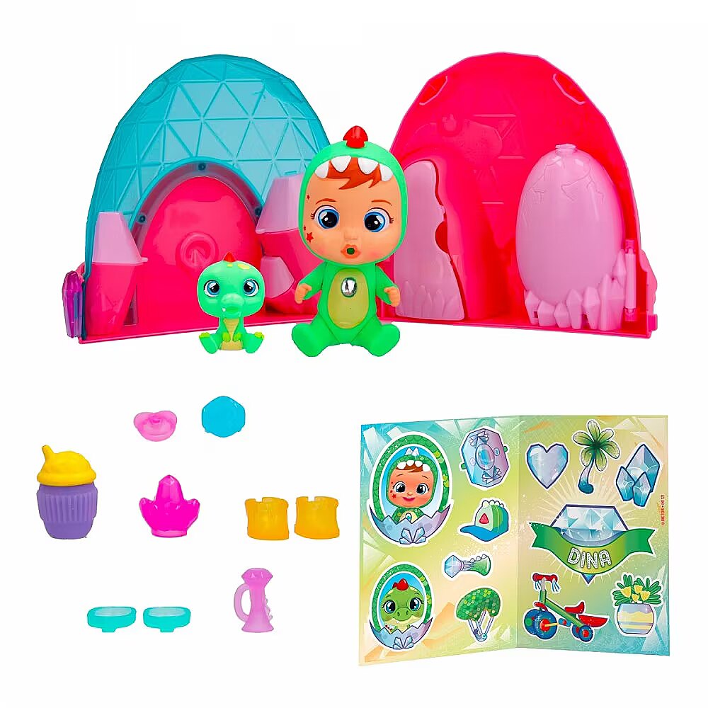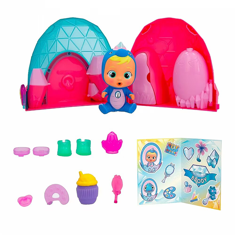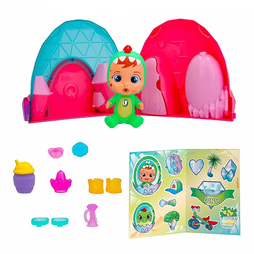 Description - Discover the brand new world of Cry Babies Magic Tears Icy World Dinos! There are more than 8 characters to collect, each representing a different character with a matching animal! Open the capsule by pressing the ice crystal and discover all 10 accessories included: a baby bottle, a dummy, a campfire, a pair of shoes, a pair of skates, two unique accessories and a sticker sheet. Feed your baby doll with the magic bottle. Press on her tummy and real tears will fly from her eyes! Tears have magical powers, when they fall into the egg, a pet will emerge! Discover the Cry Babies Magic Tears animated series on YouTube! Various designs. Product shipped randomly, no specific model available. Price is for 1 item.