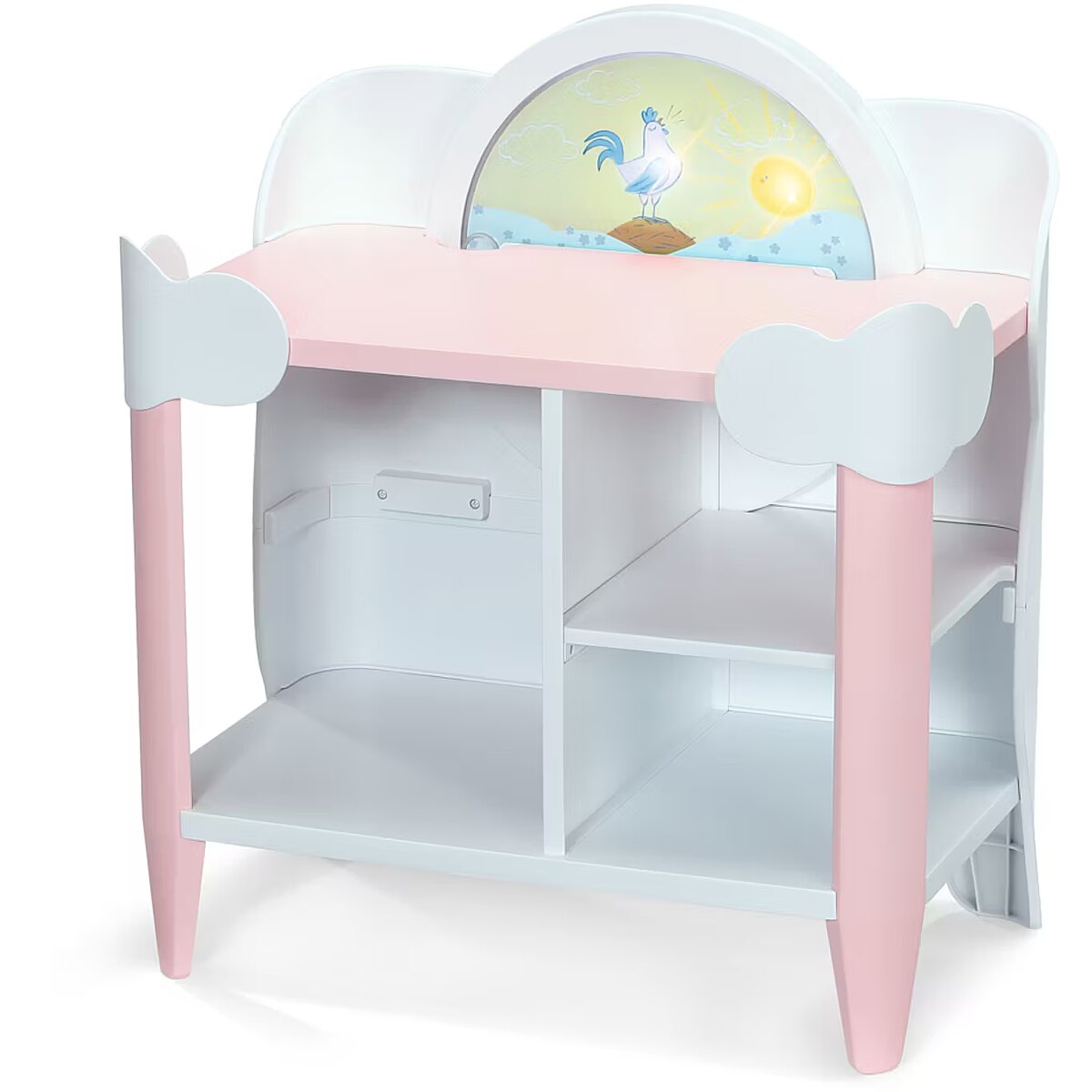 LongDesc - A changing table is simply a must-have everyday item. The heavenly white and pink piece of furniture with its cloud design offers plenty of storage space. Nappies, bodysuits and more can be stowed away in the large compartments. Larger clothing items can be hung neatly on the clothes rail.You need a changing table like this one several times a day for Baby Annabell. You simply can’t do without it – just like the sky cannot do without the sun and the moon. Which is exactly what your little munchkin can look up at while she is laying on the blue mat and having her nappy changed. Turn the wheel on the back to display either night or day in the window. Complete with light effects, sounds and melodies. • Original accessory for the Baby Annabell branded doll• Suitable for dolls in the sizes 36 cm and 43 cm• The premium-quality accessories boost the imagination and offer new possibilities and stimuli for playBaby Annabell Day & Night Changing Table including changing mat and 3 clothes hangers