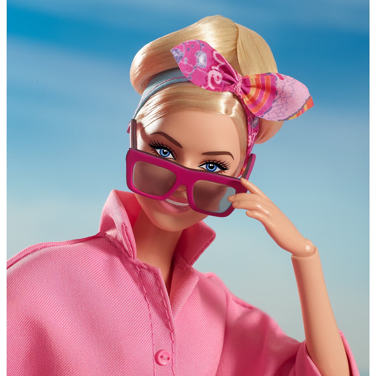 LongDesc - Greetings from Barbie Land! In the likeness of Margot Robbie as Barbie in Barbie The Movie, this collectible doll is dressed in head-to-toe pink. Her look is pulled straight from a memorable scene in the movie -- down to her printed hair scarf and big sunnies! Celebrating Barbie The Movie, this Barbie doll makes a great gift for fans and collectors alike. Doll stand included. Doll cannot stand alone. Colours and decorations may vary.