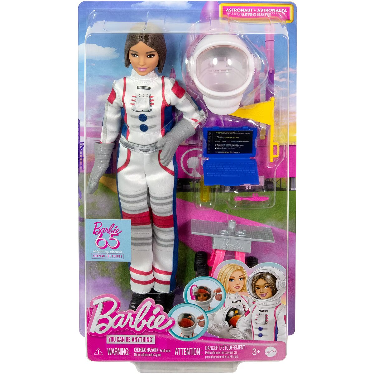 LongDesc - Celebrate Barbie doll's 65th anniversary with a collection of fashion dolls highlighting fan-favourite careers like this astronaut set. Barbie doll wears a spacesuit with iconic pink touches and comes with 10 themed accessories, including a view-changing helmet and rolling space rover! Kids can role-play and dream big -- collectors will want them all! Each doll sold separately, subject to availability. Dolls cannot stand alone. Colours and decorations may vary.