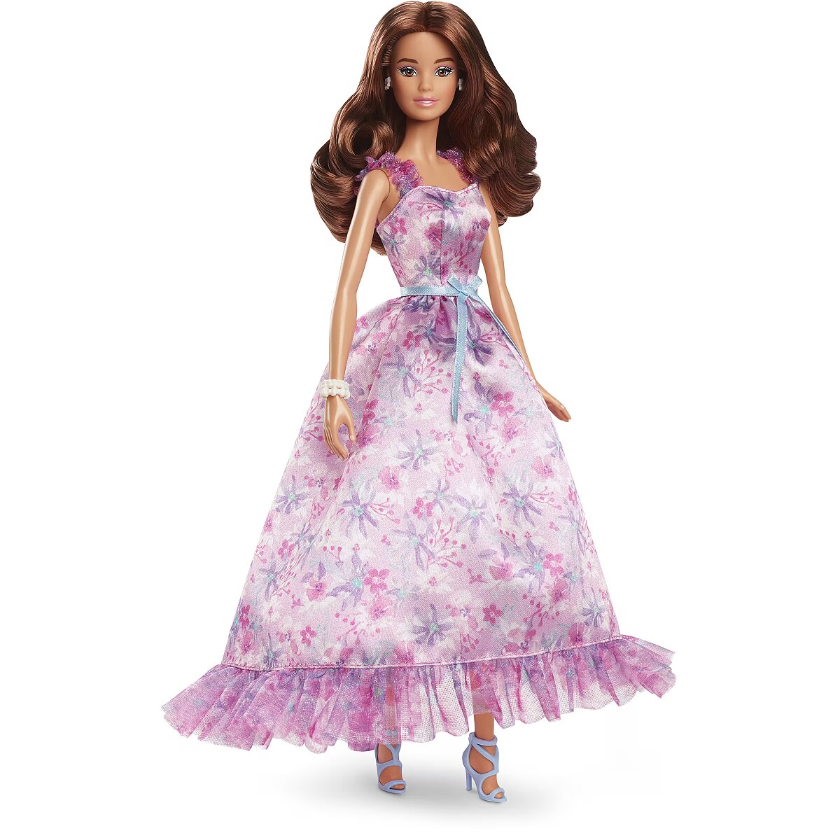 LongDesc - Happy birthday from Barbie! This special occasion Barbie Birthday Wishes doll wears a satiny dress blooming with printed flowers. She makes a super sweet present for anyone's big day! The package offers a place to write a note, adding a personal touch that loved ones can cherish for years to come. May this Barbie doll be a good luck charm to help birthday wishes come true! Barbie doll cannot stand alone. Colours and decorations may vary.