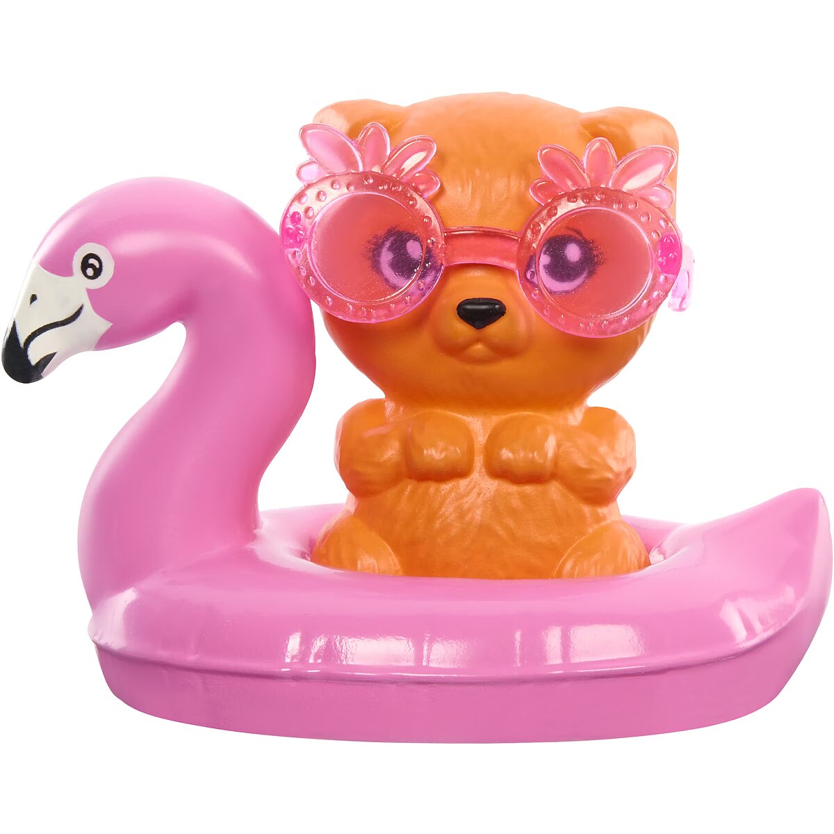 Packaging content - Packaging content - Includes drink cup with reusable lift feature, 1 scented Barbie doll with colour change, 1 scented squishy pet, 1 cover-up, 1 headband, 1 pair of shoes, 1 mini drink cup, 1 pair of puppy sunglasses, 2 floaties, 3 sand accessories, 4 drink toppers and bag of moldable sand.
