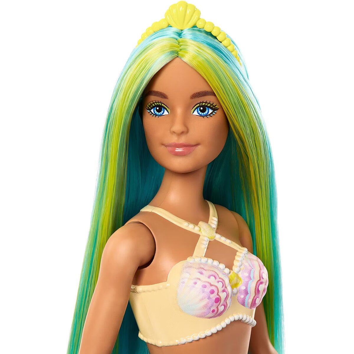 LongDesc - Kids will love dreaming up magical undersea tales with their beautiful Barbie mermaid dolls! Each mermaid has a shell-inspired bodice, sculpted tail, and fantasy-coloured hair adorned with detailed accessories. Kids 3 years old and up can collect a variety of mermaids and go on aquatic adventures! Each sold separately, subject to availability. Barbie dolls cannot swim or stand alone. Colours and decorations may vary.