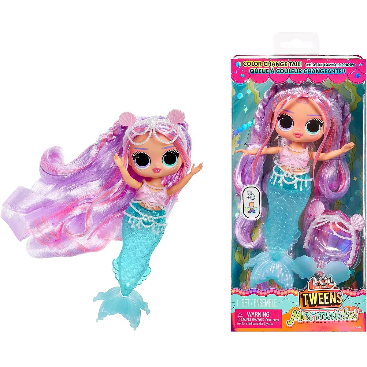 LongDesc - I’m in Be Tween, but right where I wanna be. Full of surprises & unique style. Look out world, cuz here I come.Introducing the all-new L.O.L. Surprise Tweens fashion doll Flora Moon, a stargazer and collector of crystals. Unbox 10+ surprises and get to know Flora Moon who loves gazing at the stars and moon and checking out her horoscope. Flora Moon likes to go with her own flow and keep things chill, whether she’s kicking it on her skateboard or hanging with her friends! Her style is inspired by the constellations including her wide legged jeans designed with a print of the stars in the sky, starlight earrings, and her pink platforms. Her outfit also includes a fashionable short sleeve, purple sweater, heart shaped sunglasses, an adorable bracelet, heart hair clips, and cute, twin kitty backpack! She also comes with a skateboard and radio speaker to get to where she’s going in her chill-style. She has stunning features, beautiful pink hair, her own fabulous style, and comes articulated for tons of posing opportunities. Each box includes a L.O.L. Surprise Tweens fashion doll, unique fashions, shoes, backpack, sunglasses, accessories, skateboard, radio speaker, and hairbrush. Collect all L.O.L. Surprise Tweens fashion dolls: Ellie Fly, Hana Groove, Flora Moon, and Cassie Cool! L.O.L. Surprise fashion dolls with stylish hair, outfits and many detailed accessory pieces make a perfect toy for kids, including 4 years old and up for imaginative pretend play! As gifts for any special occasion, dolls provide hours of social play with siblings and friends! From MGA Entertainment, creators of L.O.L. Surprise fashion and collectible dolls, Rainbow High™ fashion dolls, Na Na Na Surprise dolls, Bratz® fashion dolls, MGA's Dream Ella™, MGA's Glitter Babyz™, Lalaloopsy™, Baby Born® Surprise baby dolls and collectibles, Little Tikes® kids' toys and many other favorite brands.