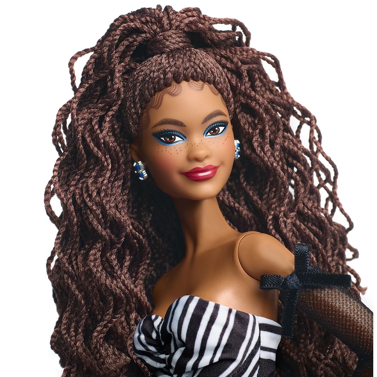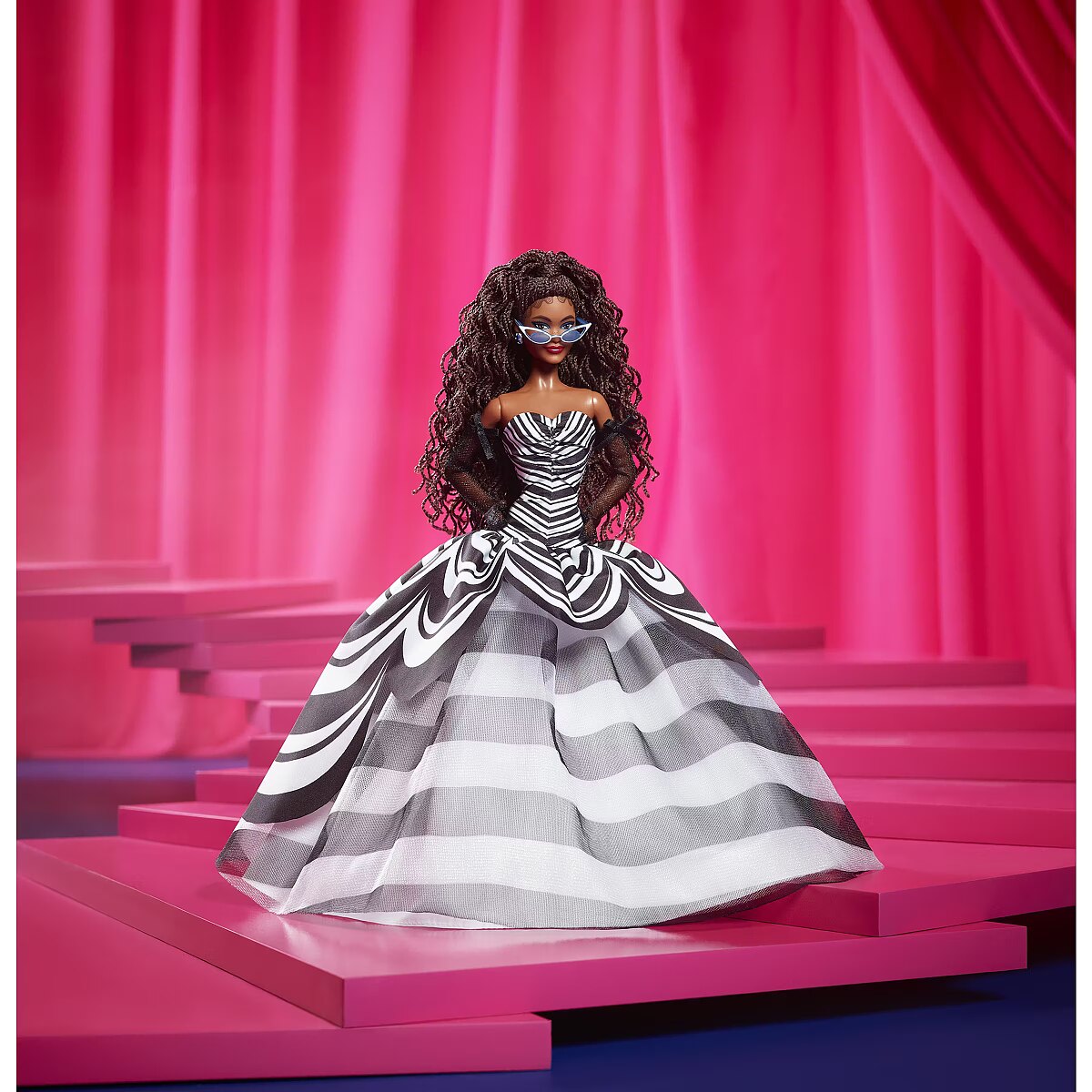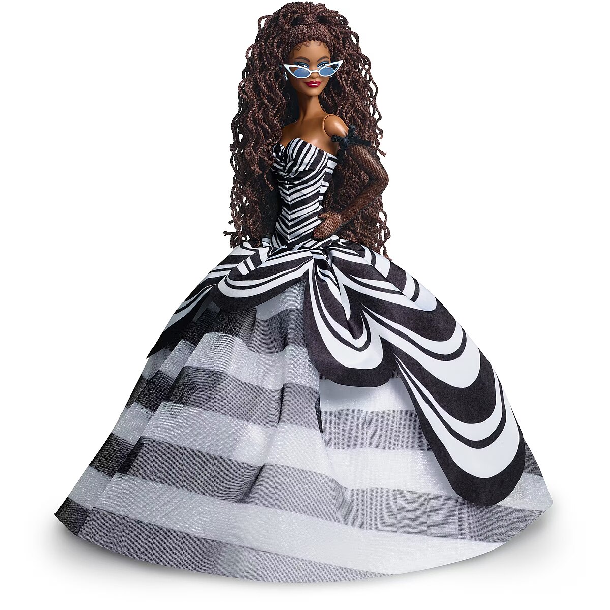 LongDesc - This glamorous Barbie doll marks the 65th anniversary of Barbie in stunning fashion. A celebration of the icon's heritage, her commemorative look is imbued with gorgeous head-to-toe details that nod to the original Barbie doll. A vision in black and white with pops of sapphire colour, she is a must-have for collectors, Barbie lovers, and fashion aficionados the world over. Includes doll stand and Certificate of Authenticity. Barbie doll cannot stand alone. Colours and decorations may vary.