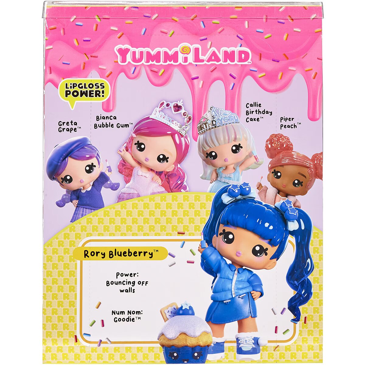 LongDesc - Welcome to Yummiland, where our brave Yummis team up to protect their incredible, edible city with magical lip gloss superpowers! Join them on their journey by creating your own real lip gloss included with your Yummiland doll and Num Nom pet. Each doll also features removable fashion, accessories, and a matching comb for styling their hair!Rory Blueberry lives in Yummiland with her team of fellow adventure-seeking Yummis where her special lip gloss gives her the superpower of gigantic jumps. Play along at home with your large Rory Blueberry doll and her Num Nom Goodie by creating your own blueberry scented lip gloss!Kids will love creating their own lip gloss while following alongside their favorite Yummiland and Num Nom characters from the upcoming streaming web series. This makes for a perfect gift with each package including a scented doll + interchangeable fashion + styling comb + Num Nom with DIY lip gloss + lip gloss kit (color, scent and clear base). This playset inspires creativity, imagination and confidence.Collect all of the large Yummiland Doll with Lip Gloss + Num Noms and watch the Yummiland animated series on YouTube now!