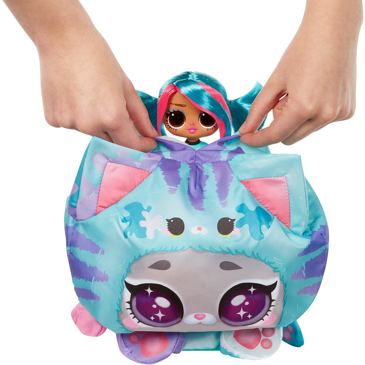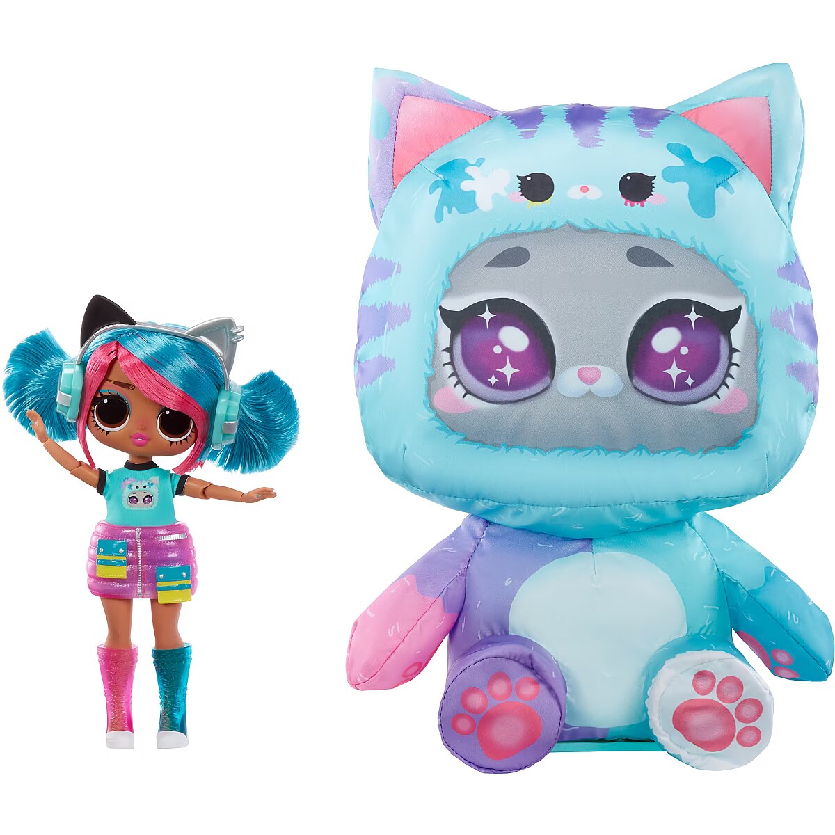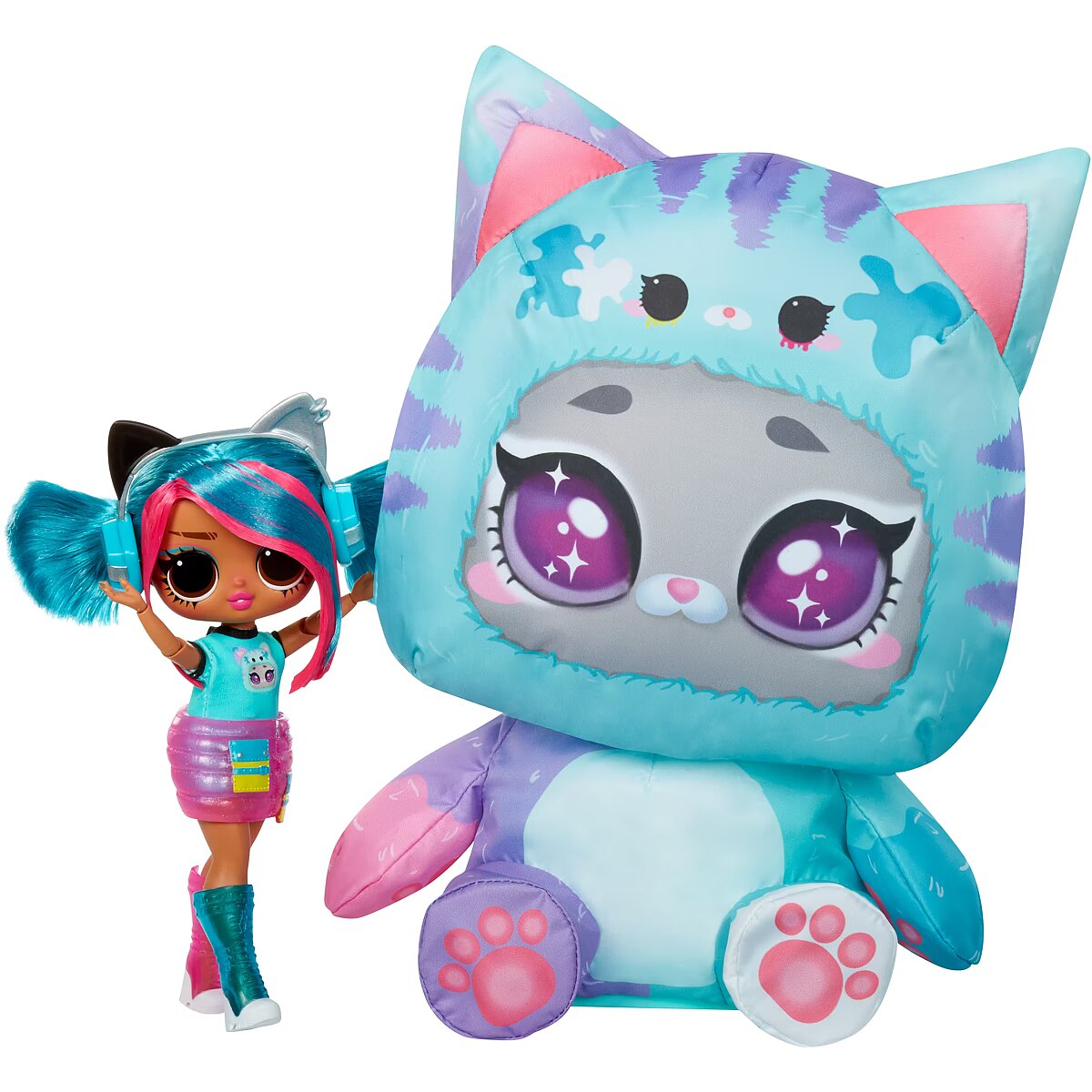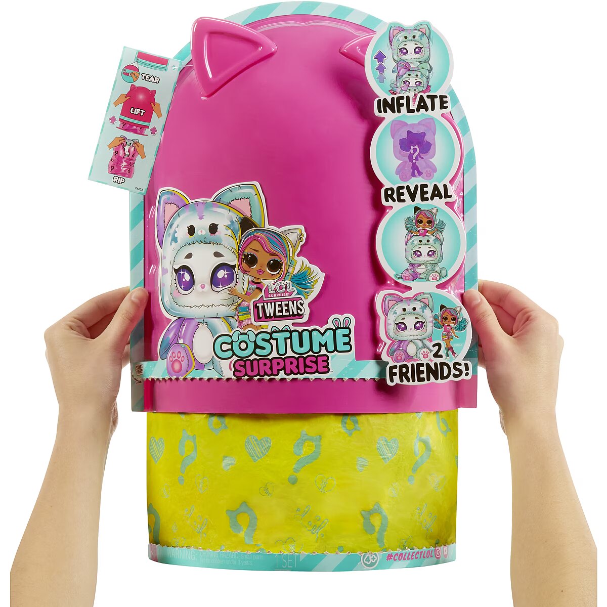 LongDesc - Adorably Awkward or Too Cool 4 School! Music Venue or Nail Salon! Stripes or Dots! – Emma Emo Get ready to unwrap the ultimate surprise and dive into an unboxing adventure like no other with the all-new L.O.L. Surprise Tweens Costume Surprise™ including fan-favorite fashion doll Emma Emo in a trendy new look and her adorable inflatable kitty costume. This outrageously fun, experiential reveal is bursting with layers of surprises, perfect for endless imaginative and storytelling play for kids. Discover what’s inside by first tearing the zipper at the bottom of the packaging and lifting up the outer pink shell to reveal a mystery wrapping paper, kicking off the first stage of the inflating process! Watch as the paper grows bigger and fuller and once completely inflated, rip open the paper to discover your charming teal kitty costume! But wait, the surprise doesn’t stop there! Undo the velcro from the back of the kitty’s head to unveil your gorgeous Tweens Emma Emo doll hidden inside! Don’t forget to unbox the cute surprises and remove the Tweens doll from her doll stand to dress her in trendy new fashions and accessories including a fashionable skirt, stylish headphones with kitty ears to match her huggable costume, and colorful chic shoes! Close up the pet costume and watch as it grows and fully inflates, giving you two best friends to play with together – Emma Emo and her kitty costume! And the fun doesn’t stop there - simply toggle the on and off switch at the bottom of your pet costume to repeat the inflating fun over and over again! Each Tweens doll has stunning features, glamorous hair, her own fabulous style, and comes articulated for tons of posing opportunities alongside her new pet costume friend! Collect all 4 dazzling L.O.L. Surprise Tweens Costume Surprise™ fashion dolls and their soft pet costumes: Aya Cherry with her bunny costume, Emma Emo with her kitty costume, Ali Dance with her puppy costume, and Hoops Cutie with her panda costume! Don’t forget to watch and catch the Tweens dolls and their pet costumes in action in the all-new L.O.L. Surprise SkateDance Movie, premiering October 2024 on YouTube Kids!