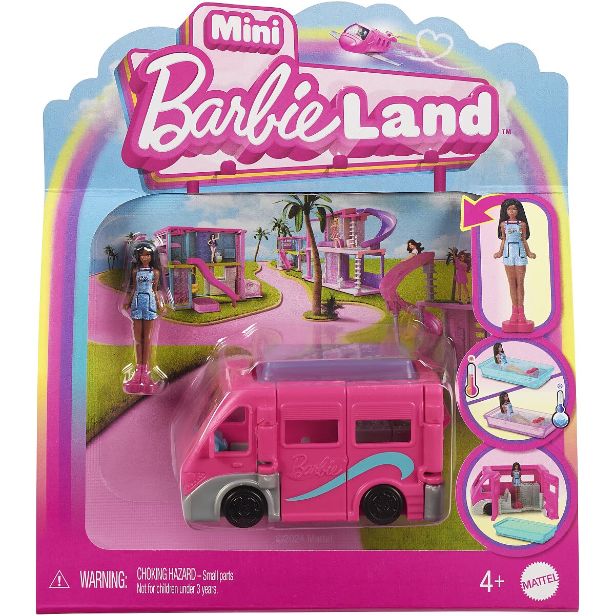 Description - Barbie Mini Barbieland Doll & Vehicle Set Enter the world of Barbie doll with Mini BarbieLand - a place to imagine big and Dream in Mini! Stylish rides made with surprise, these mini vehicle sets are ready for play or display. The small-scale recreations of iconic Barbie transportation, like the DreamCamper, have fun features and a color-change transformation unique to the vehicle! Each set comes with an adorably styled 1.5-inch Barbie doll that bends at the waist so she can sit and drive toward big adventures in Mini BarbieLand. Fans ages 6 years and older will want to collect all these cute wheels to build their own mini world! Each sold separately, subject to availability. Colors and decorations may vary. Enter Mini BarbieLand with Barbie vehicle sets and arrive ready to imagine big and Dream in Mini! Each playset includes a small-scale recreation of an iconic Barbie vehicle with a wow color-change moment and a 1.5-inch doll! Simply use icy cold water to transform the look of the color-change piece and warm water to change it back - over and over again! The adorably tiny rides have moving parts, like doors, or additional pieces, like a roadside sign, for added role-play, storytelling and posing fun! The mini dolls feature cute looks and bend at the waist to sit and drive, plus the attached heart-shaped base plugs into Mini BarbieLand playsets (sets sold separately). Kids and fans can collect them all to design and drive through their own mini worlds and create big possibilities (each sold separately, subject to availability)! Fans can collect all the Mini BarbieLand dolls, vehicles and playsets to explore through their own mini worlds and find big possibilities (each sold separately, subject to availability).