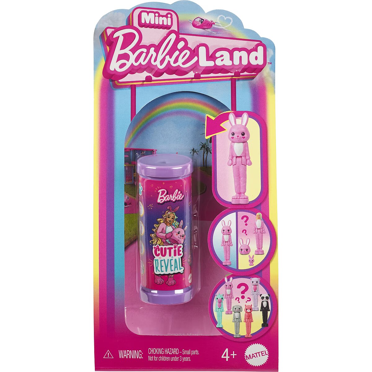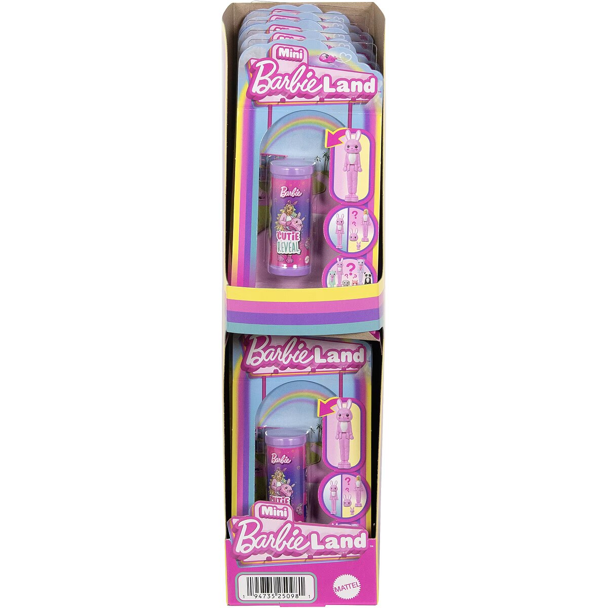 LongDesc - Enter the world of Barbie doll with Mini BarbieLand -- a place to imagine big and Dream in Mini! With Mini BarbieLand Cutie Reveal dolls, there's hugely cute unboxing and a teeny surprise. Open the small tube, pull out the mini doll costumed as an animal plush, then remove the head to reveal the doll's look -- so adorable! There's also a matching mini pet. Which doll will you reveal? Each 1.5-inch doll bends at the waist and stands on a heart-shaped base that fits into Mini BarbieLand playsets (sold separately). Also use the mini packaging tube to store the doll. Fans ages 4 years and older will want to collect all these cute dolls to build their own mini world! Each sold separately, subject to availability. Colours and decorations may vary.