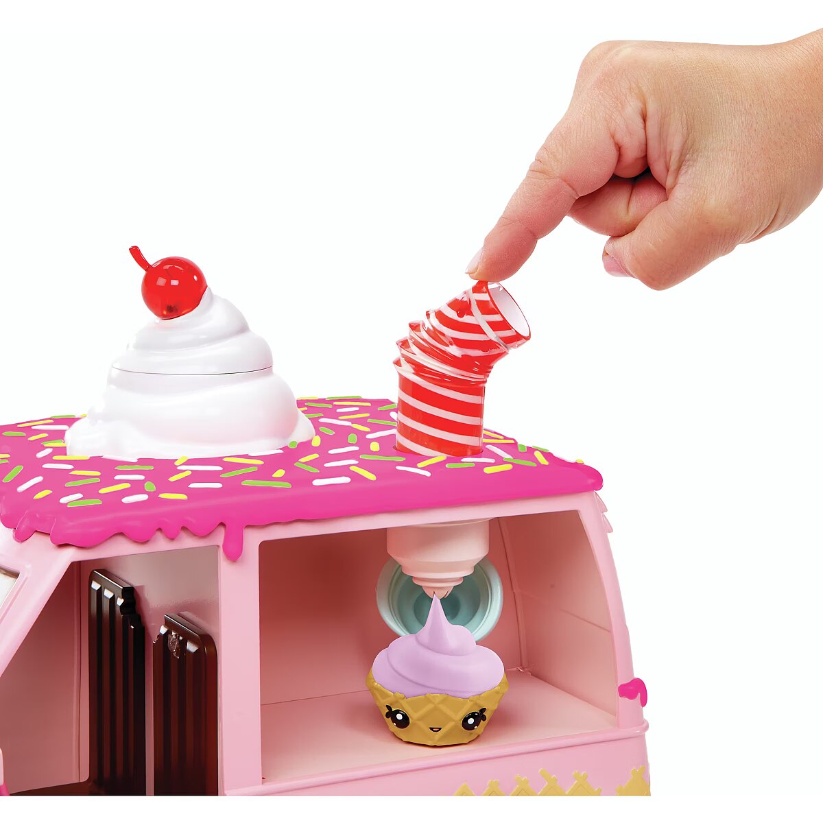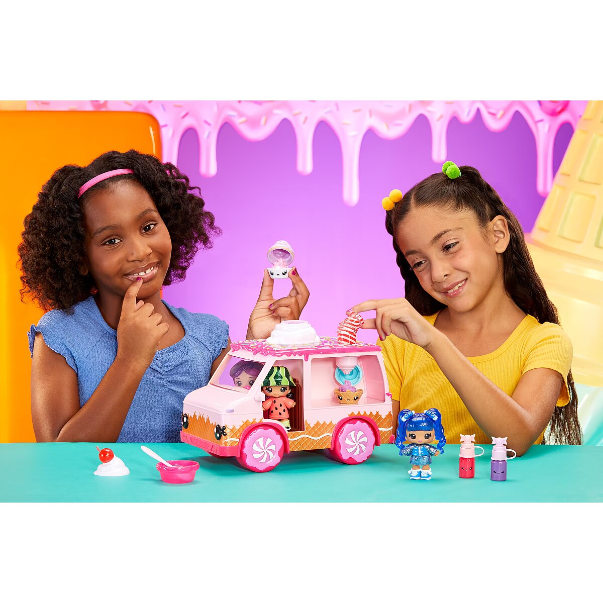 LongDesc - Welcome to Yummiland, where six brave Yummis team up to protect their incredible, edible city with magical lip gloss superpowers!Play along with the Yummiland Lip Gloss Truck that includes everything you need to create your very own lip gloss! Mix your custom gloss right inside your truck’s whipped cream top, then place it in the straw to dispense right into your Num Nom container. Your small Yummiland dolls fit in the front seat for even more Yummiland play! (Dolls sold separately).Kids will love creating their own lip gloss right inside the Yummiland Lip Gloss Truck while following alongside their favorite Yummiland characters from the animated series. This special playset includes a Lip Gloss Truck + 2 exclusive Num Noms + 2 DIY lip gloss kits (color, scent, clear cream base and mixing tools). This playset inspires creativity and imagination.Take your small Yummiland dolls for a ride and watch the Yummiland animated series on YouTube now!*Yummiland Dolls sold separately