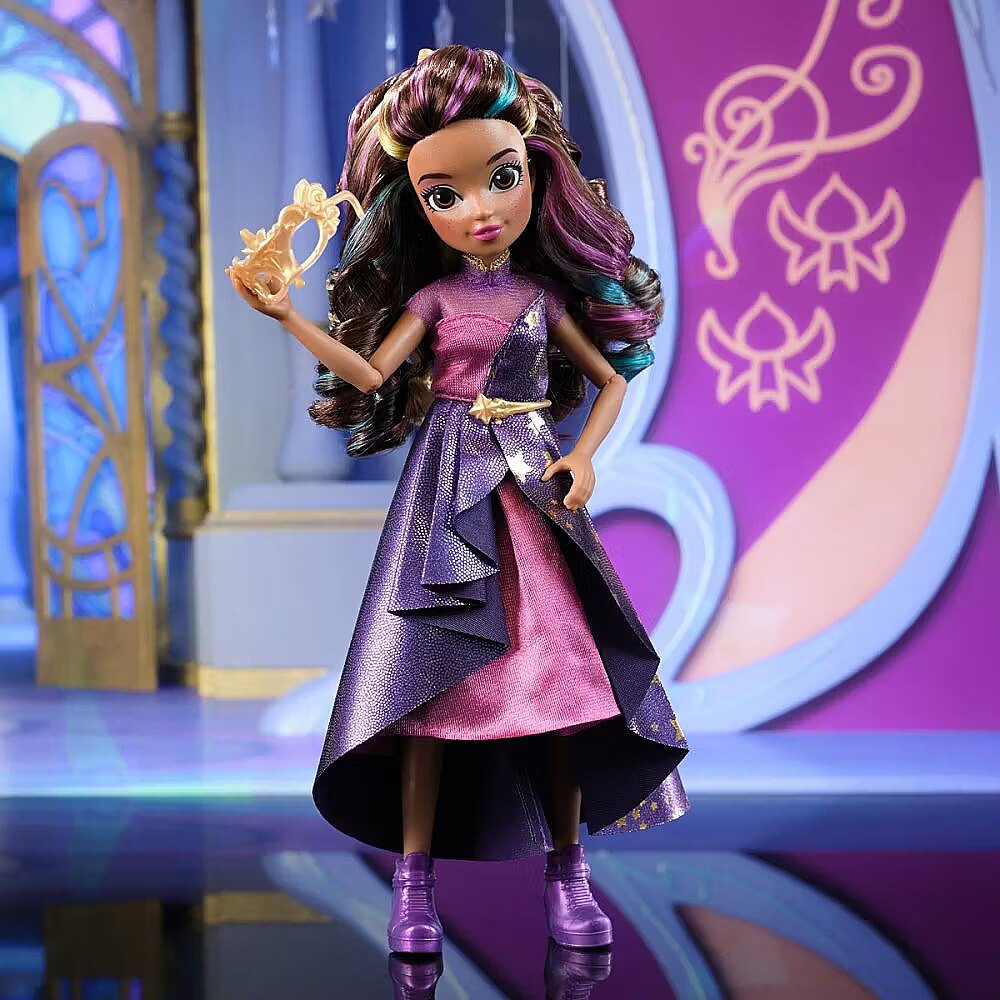 LongDesc - Celebrate the magic of the Fate Faeries at the Unicorn Academy masquerade ball with the Sophia Masquerade doll. Inspired by the NETFLIX animated show and kids books books, this 9.5-inch fashion doll brings Sophia to life. Featuring authentic details and 9 doll accessories, Sophia comes in her riding gear, ready to ride into adventure with her unicorn, Rainbow Light-up Wildstar (sold separately). When it’s time for the ball, switch Sophia from her removable jacket, necklace and boots into her star-print asymmetrical dress, belt, mask, and purple booties. Style her highlighted hair into an updo with the hair tool and hair clip. With 9 points of articulation, pose Sophia as you recreate scenes from the show. For more ways to experience Unicorn Academy with your favorite characters, expand your world with Ava and Isabel dolls and their unicorns, Leaf and River (each sold separately). The magical bonds between Unicorn Academy students and their unicorns will spark endless imaginative storytelling. For kids who enjoy unicorns and horse toys, dolls & accessories, doll house play, collectibles, plush toys and more, Unicorn Academy toys are fun birthday gifts for girls or gifts for any occasion. Bring home the Unicorn Academy deluxe Sophia Masquerade doll.Includes: 1 Doll, 8 Fashion Accessories, 1 Hair Styling Tool