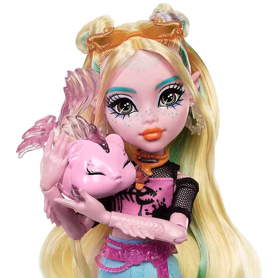 LongDesc - This Monster High doll makes quite a fintastic sea monster! Lagoona Blue drips unbe-reef-ably cool style in her Y2K-inspired lurk. Her bubbly piranha Neptuna looks as spooky-sweet as ever, too! With her poseable body and ocean-inspired storytelling accessories, Lagoona Blue doll is an eek-ceptional gift for kids 4 years old and up. Fully articulated. Doll cannot stand alone. Colours and decorations may vary.