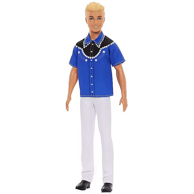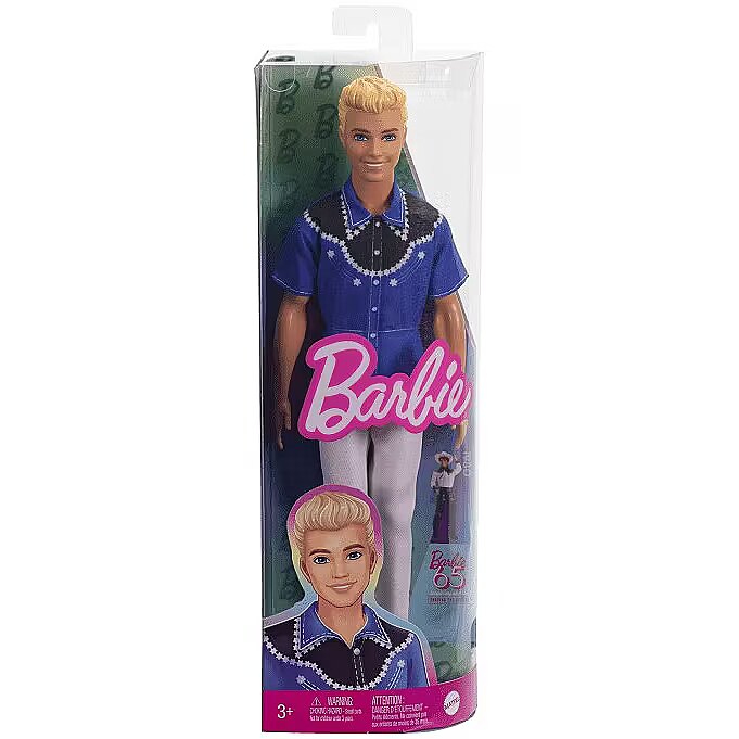 LongSummaryDescription - Barbie Fashionistas 65th Anniversary Blonde Ken Doll, Western Look. Doll type: Fashion doll, Doll's gender: Male, Recommended age (min): 3 yr(s), Suggested gender: Girl, Product colour: Multicolour