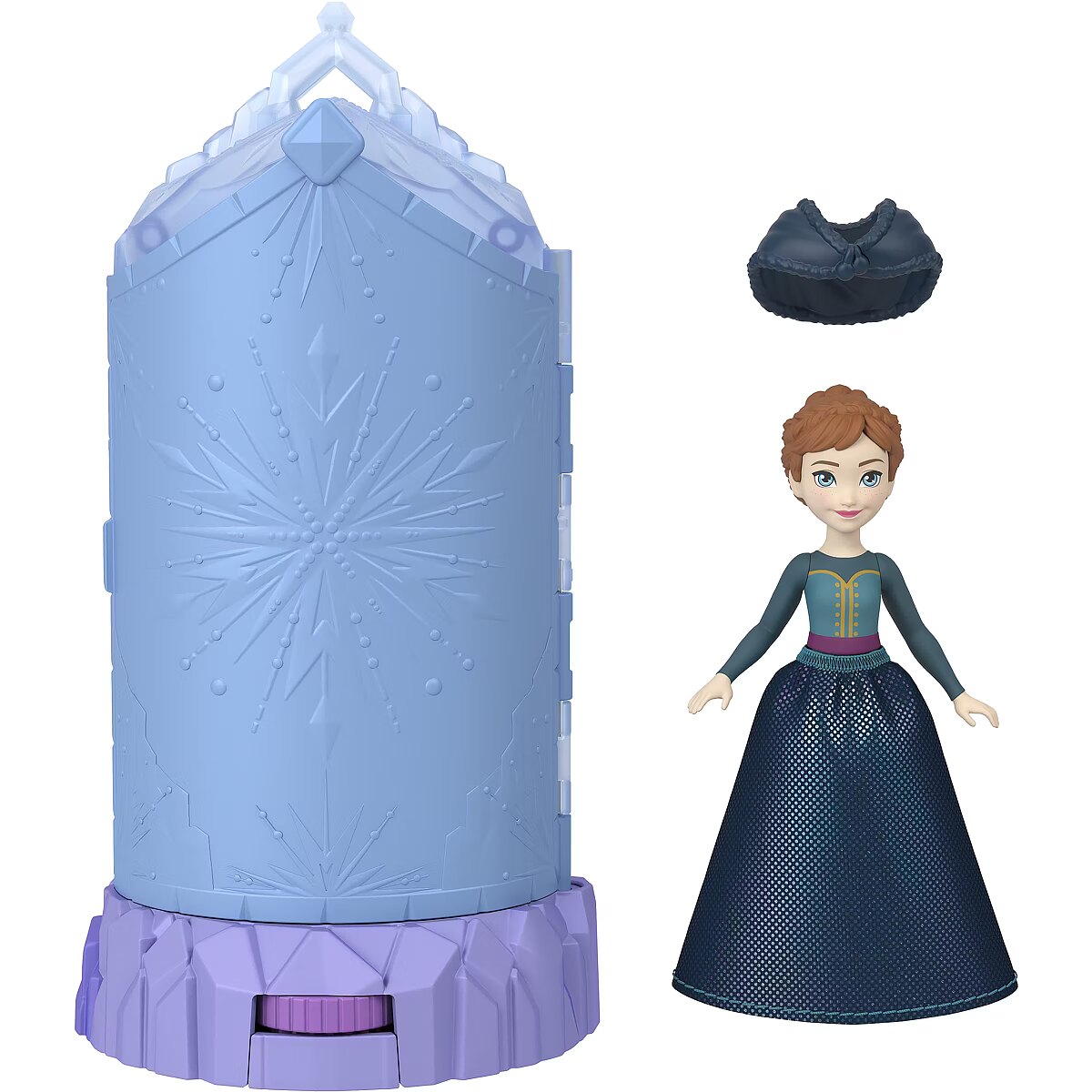 LongSummaryDescription - Disney Frozen Ice Castle Spin Surprise Playsets with Small Doll Spinning Reveal (Styles May Vary). Doll type: Fashion doll, Doll's gender: Female, Recommended age (min): 3 yr(s), Suggested gender: Boy/Girl. Height: 152.4 mm, Weight: 143 g. Material: Plastic, Product colour: Blue
