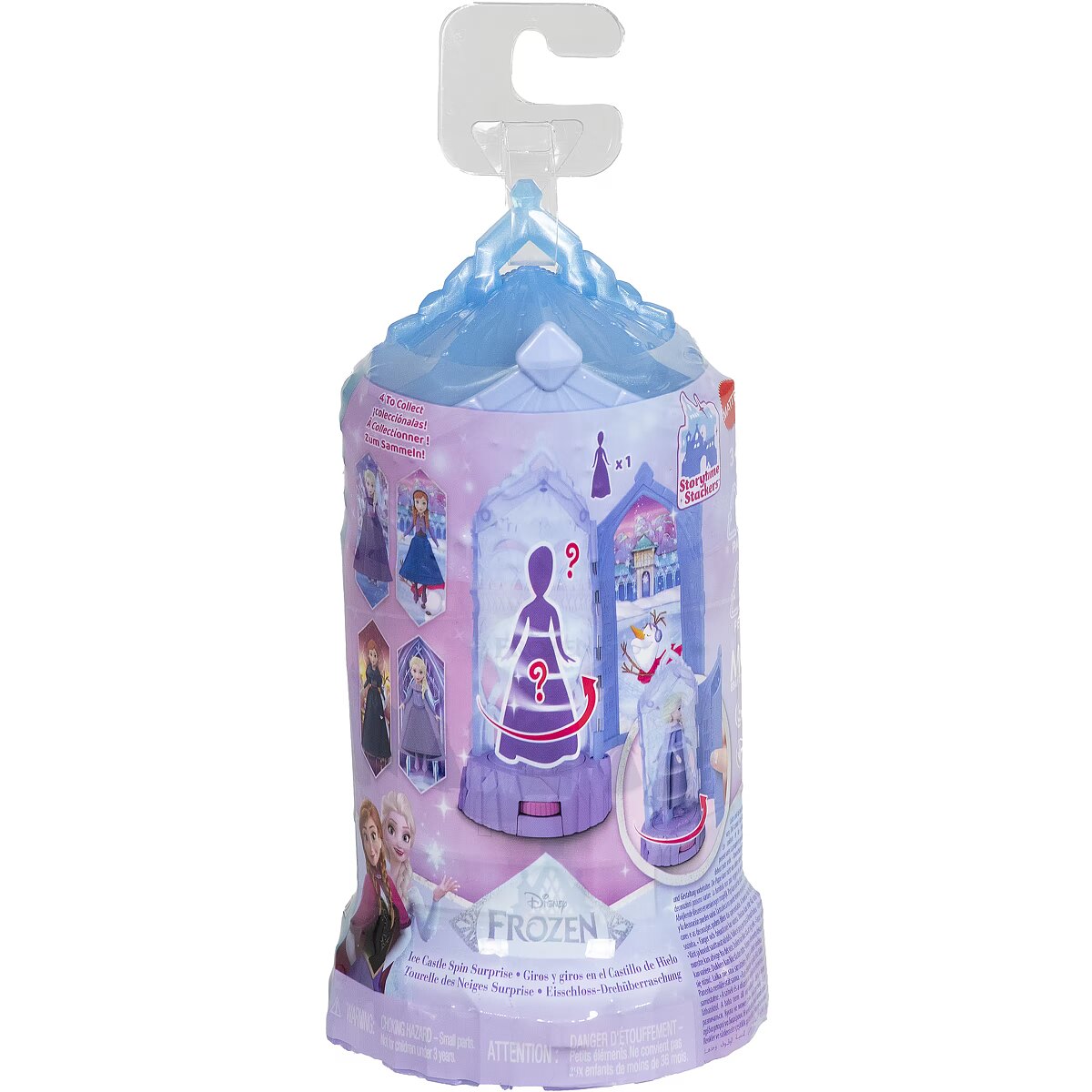 LongDesc - Imagine Disney Frozen Storytime Stackers adventures with Ice Castle Spin Surprise stacking playsets! Open the mini castle door and a magical spinning action reveals an adorable Disney Frozen small doll, inspired by animated characters in the Disney movies. Repeat the twirling fun by opening and closing the castle door or using the thumbwheel. Connect the world by attaching the castles to other Storytime Stackers playsets (not included) for the ultimate stackable adventure! Each sold separately, subject to availability. Dolls cannot stand alone. Colours and decorations may vary.