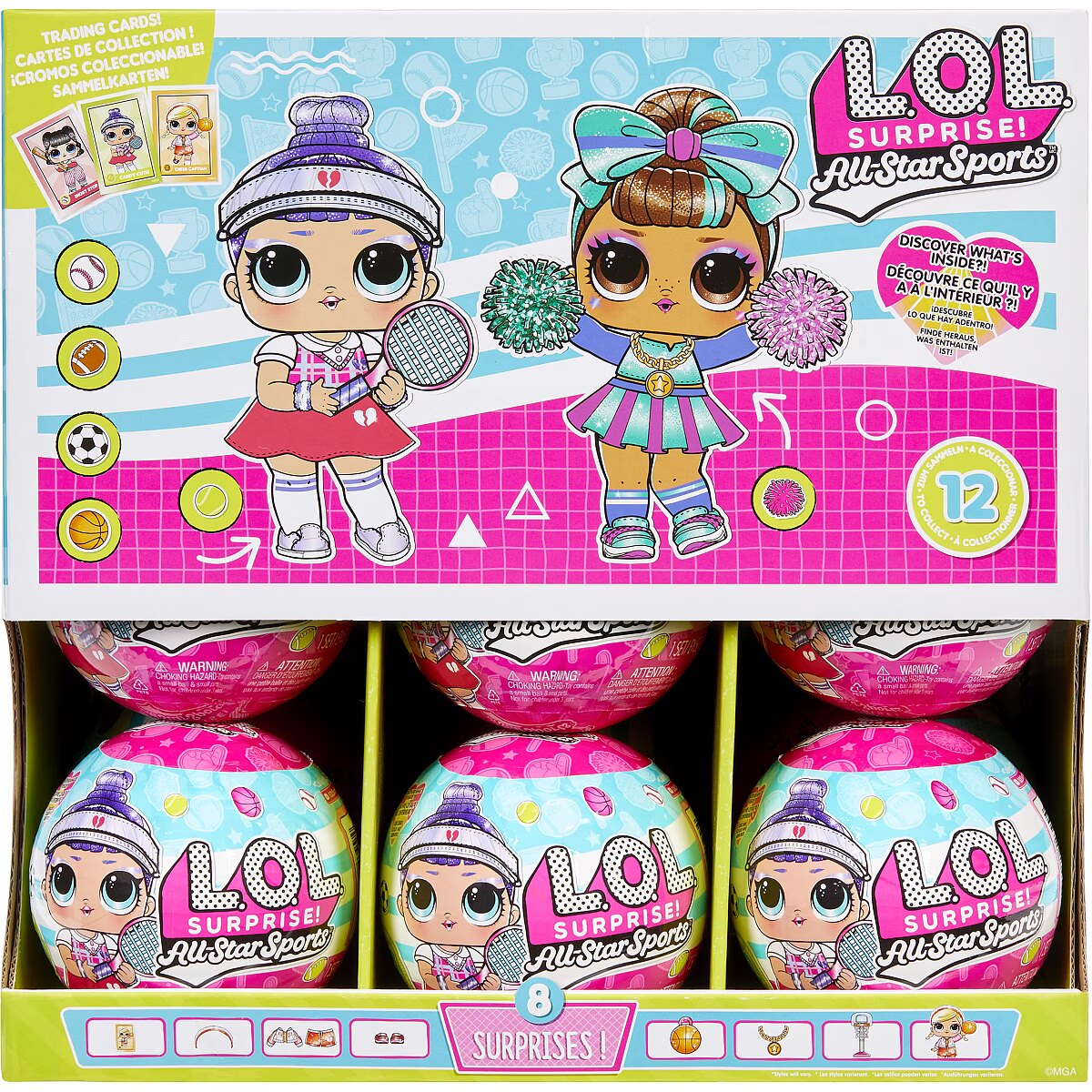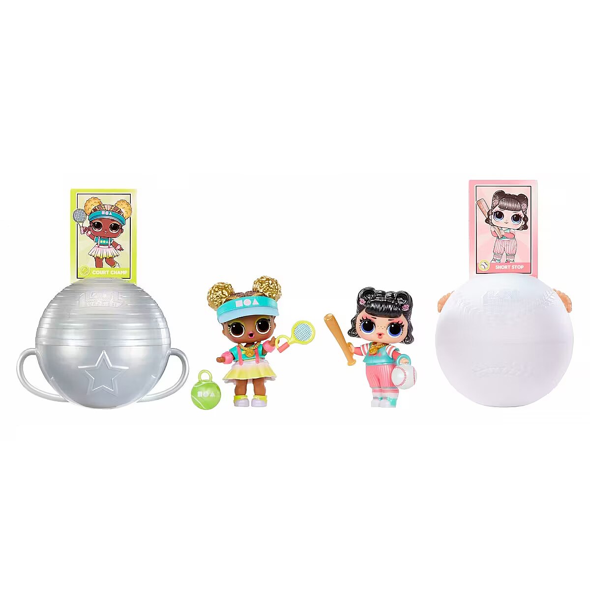 LongDesc - The game is on! Get ready for a sporty surprise with the return of the fan-favorite L.O.L. Surprise All Star Sports™ Vault Collection Tots! This fun unboxing experience is an adorable collectible for kids that features a variety of Sports Tots for kids to uncover. Which sports doll will you get? Will you find a tot who loves tennis, basketball, baseball, soccer, football, or cheer? Each doll comes with her own stylish & sporty outfit, matching accessories, and her own collectible trading card that doubles as a backdrop. The ball also converts into a sporty-themed stand for display or imaginative play. Each collectible doll makes for a great birthday gift for kids or gift for any occasion. Perfect for fun, creative, and imaginative play for children! Discover what’s inside and collect all 12 adorable L.O.L. Surprise All Star Sports™ Vault Collection Tots with sporty accessories. L.O.L. Surprise collectible dolls with stylish hair, outfits and many detailed accessory pieces make a perfect toy for kids, including 4 years old and up for imaginative pretend play! As gifts for any special occasion, dolls provide hours of social play with siblings and friends! From MGA Entertainment, creators of L.O.L. Surprise fashion and collectible dolls, Rainbow High™ fashion dolls, Na Na Na Surprise dolls, Bratz® fashion dolls, MGA's Dream Ella™, MGA's Glitter Babyz™, Lalaloopsy™, Baby Born® Surprise baby dolls and collectibles, Little Tikes® kids toys and many other favorite brands.