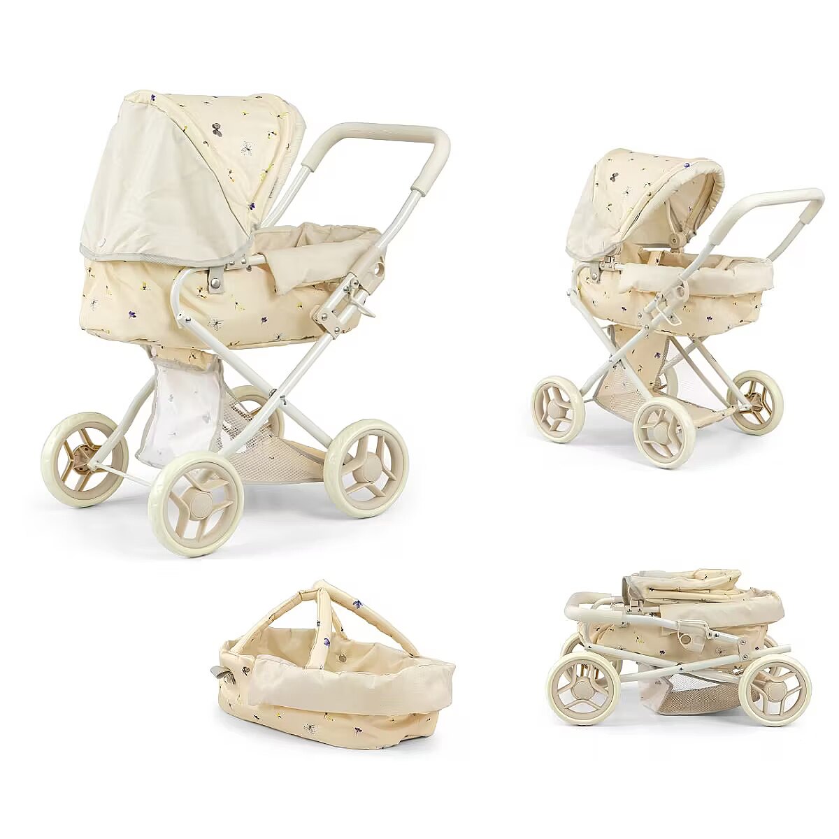 Description - Milly Mally Wózek dla lalek Alice Nature Wózek dla lalek Alice marki Milly Mally, wykonany z wysokiej jakości materiałów. Funkcje i wygląd wózka dla lalek Alice przypomina prawdziwy wózek dziecięcy. Alice to głęboki wózek z wyjmowaną gondolą, która może służyć jako nosidełko dla lalek o długości do 40 cm. W gondoli znajduje się poduszka i kołderka idealnie dopasowana do wózeczka. Wózeczek posiada "kosz" na niezbędne podczas spaceru akcesoria, m.in. buteleczki z mleczkiem, ubranka, oraz pieluszki. Wózek składa się na płasko Poszycie wykonane z poliestru - można prać Metalowy stelaż Kółeczka z piano-gumy Rączka posiada osłonkę z pianki Składana i odpinana budka Wypinana gondola Zabezpieczenie przed samoczynnym złożeniem wózka Dolna siatka na zakupy Poduszka i kołderka w zestawie