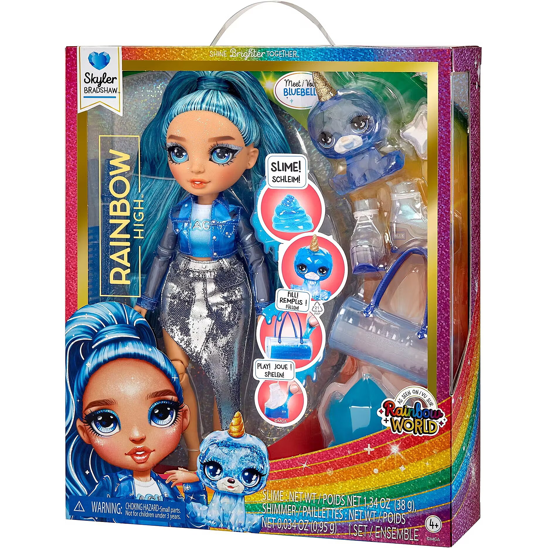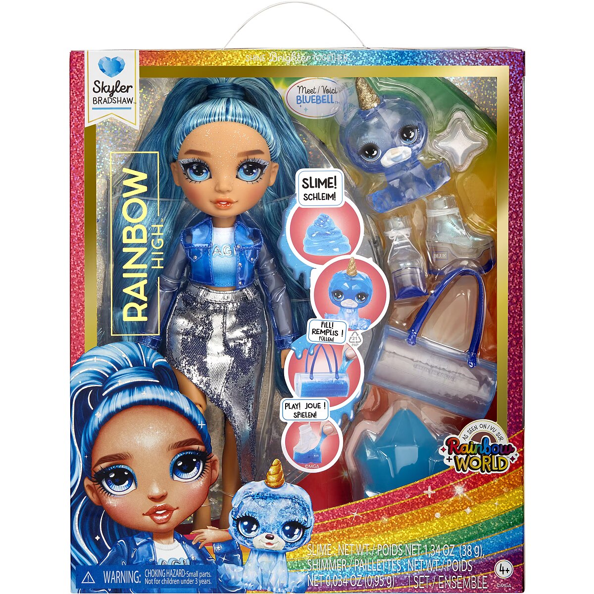 LongProductName - Rainbow High Skyler (Blue) with Slime & Pet - Blue 11” Shimmer Doll with Sparkle Slime, Magical Yeti Pet and Fashion Accessories, Kids Gift 4-12 Years