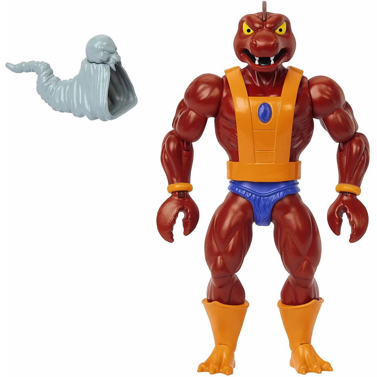 LongDesc - This MOTU Origins Clawful figure is inspired by the original cartoons from the '80s at 5.5-inch scale, but with the modern posability provided by 16 articulated joints. This Masters of the Universe toy of the spike-headed, claw-handed member of the Evil Warriors can match poses from the 1980s content or make all-new action moves. The human/crustacean hybrid has straighter legs and an overall more realistic build than his cartoon design. Clawful comes in a removable harness and is armed with a Horn of Evil accessory, in addition to his crushing claws. A mini-comic is included to expand on his story. Makes a great gift for MOTU fans 6 years and older Colours and decorations may vary.