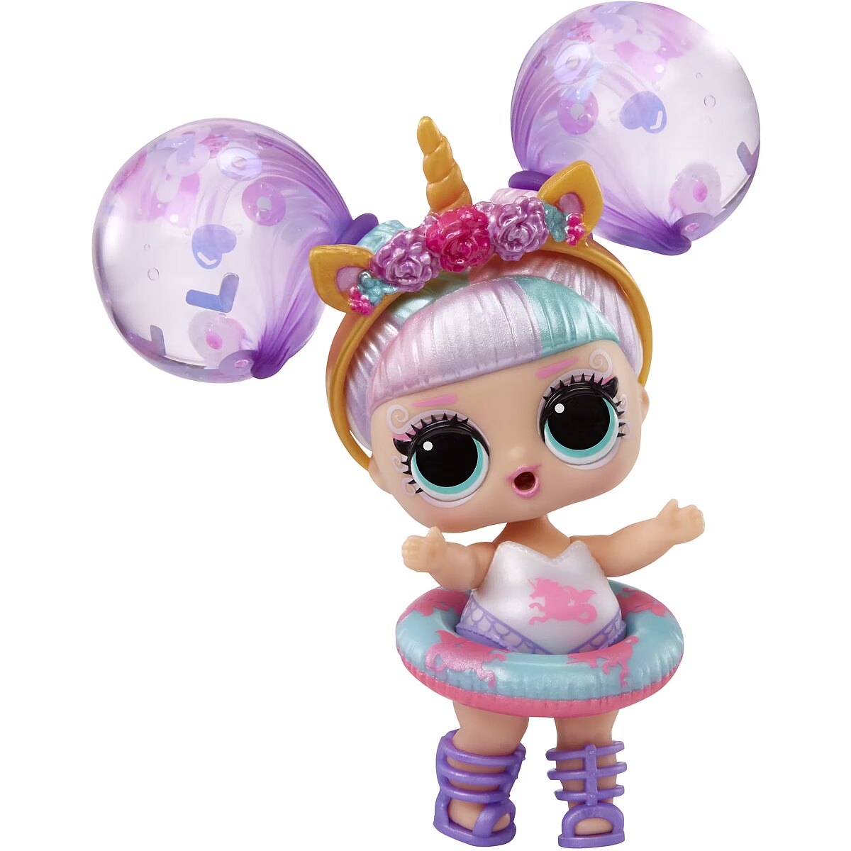 LongDesc - Introducing L.O.L. Surprise! Water Balloon Surprise dolls! Discover L.O.L.’s newest innovation, Tots with real water balloons for hair! These Tots have so many surprises and 4 fun ways to play! There are 9 fan-favorite characters to collect, like Unicorn, Fresh, Sugar, and more, with unique balloon hairstyles to reveal! Each Tot comes with two different styles of balloons (classic and squishy) and fabulous fashions and accessories to unbox! Using an included adaptor, fill your classic style balloons with water, then break them with a SPLAT to reveal your fabulous accessory inside for an epic unboxing experience! There are two ways to fill up your balloons! Attach your squishy balloons to your Tot’s hair with a click, then “feed” her using the included bottle, as she drinks, her squishy balloon will fill up to reveal a gorgeous balloon hairstyle! You can also attach the included adapter to a bottle or faucet to fill the balloons! Squishy balloons are filled with beautiful sparkles and can be reused again and again for endless fun! For even more added fun, use your bottle as a squirt toy! L.O.L. Surprise Tot includes 8 surprises: (1) L.O.L. Surprise! Water Balloon Surprise! Doll; (2) Outfit; (3) Shoes; (4) Bottle; (5) Accessory; (6) 1 or 2 Reusable Squishy Balloons; (7) 6 Classic Balloons; (8) Sticker. And 4 ways to play! Collect all 9 L.O.L. Surprise! Water Balloon Surprise! Dolls! L.O.L. Surprise collectible dolls with stylish hair, fun to dress outfits and many detailed accessory pieces make a perfect toy and playset for kids including 4- to 7-year-olds and up girls and boys for imaginative pretend play! As birthday gifts and gift for any special occasion, dolls provide hours of social play with siblings and friends! From MGA Entertainment, creators of L.O.L. Surprise fashion and collectible dolls, Rainbow High fashion dolls, Na Na Na Surprise dolls, Bratz fashion dolls, MGA's Dream Ella fashion dolls, MGA's Glitter Babyz baby dolls, Lalaloopsy, Poopsie Surprise girls dolls, Baby Born Surprise Baby Dolls and Collectibles, Little Tikes kids toys and many other favorite brands.