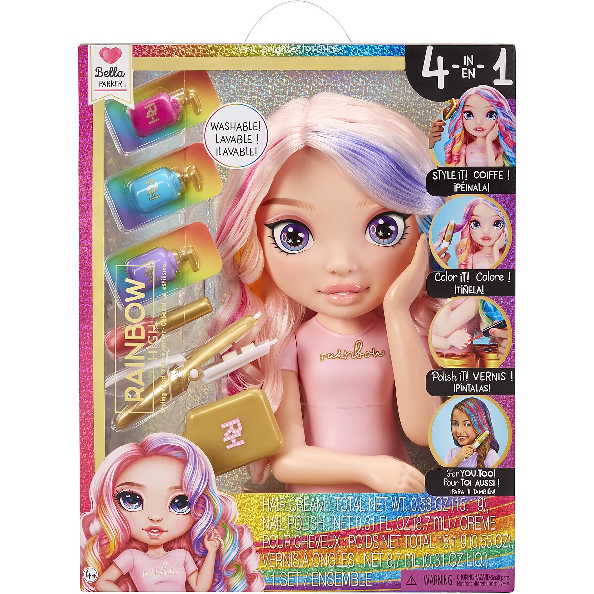 LongDesc - Rainbow High inspires creativity in all we do. Introducing our first Rainbow High Styling Head 4 in 1 playset, featuring our bestselling and fan favorite character Bella. It’s your turn to style, color, and play- over and over again. This playset will create endless storytelling and imaginative play.