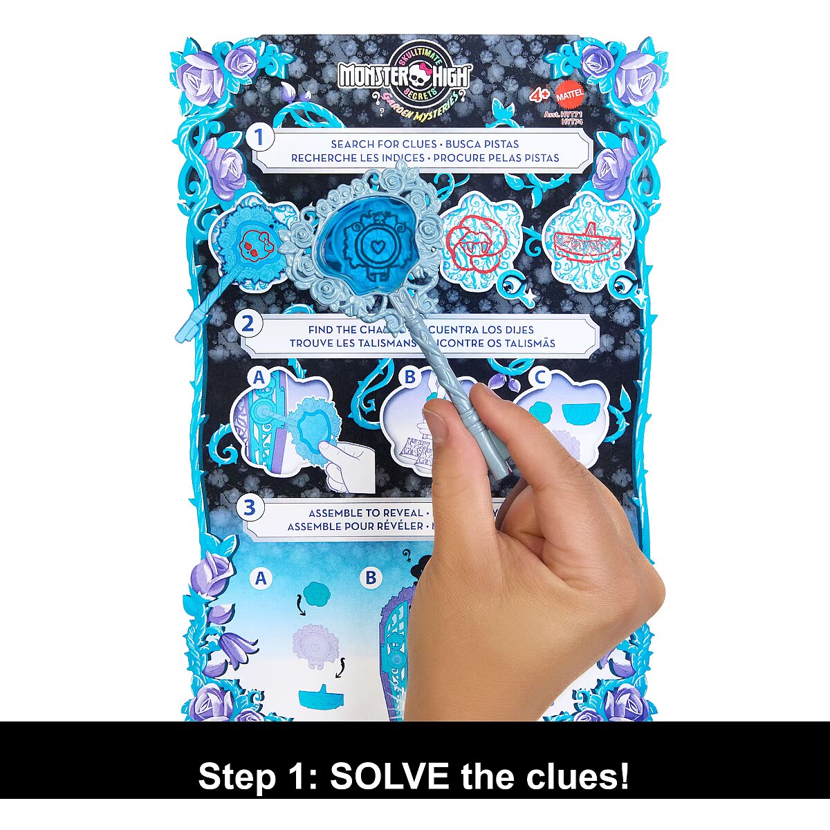 LongDesc - Solve the mystery, unlock the gates of Monster High, and reveal a Monster High doll with Skulltimate Secrets: Garden Mysteries! Kids can play spooky detective by searching for clues on the map with the 'magic' magnifying glass key. Along the way they'll discover 19+ suprises for an extraordin-eerie unboxing experience! Once playtime is over, kids ages 4 years old and up can stow the included doll, clothing, and accessories inside the creeperific closet, which is perfect for both storytelling and storage! Each sold separately, subject to availability. Fully articulated. Dolls cannot stand alone. Colours and decorations may vary.