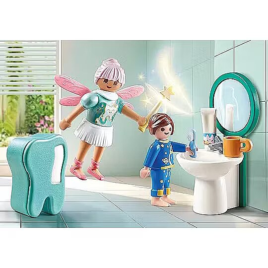 Ten czarujący zestaw PLAYMOBIL zawiera wróżkę zębuszkę, chłopca i ciekawe akcesoria, dzięki którym można tworzyć opowiadania na dobranoc. PLAYMOBIL sprawia, że każde z nich jest magiczne, nawet te, która dotyczą mlecznych ząbków!
