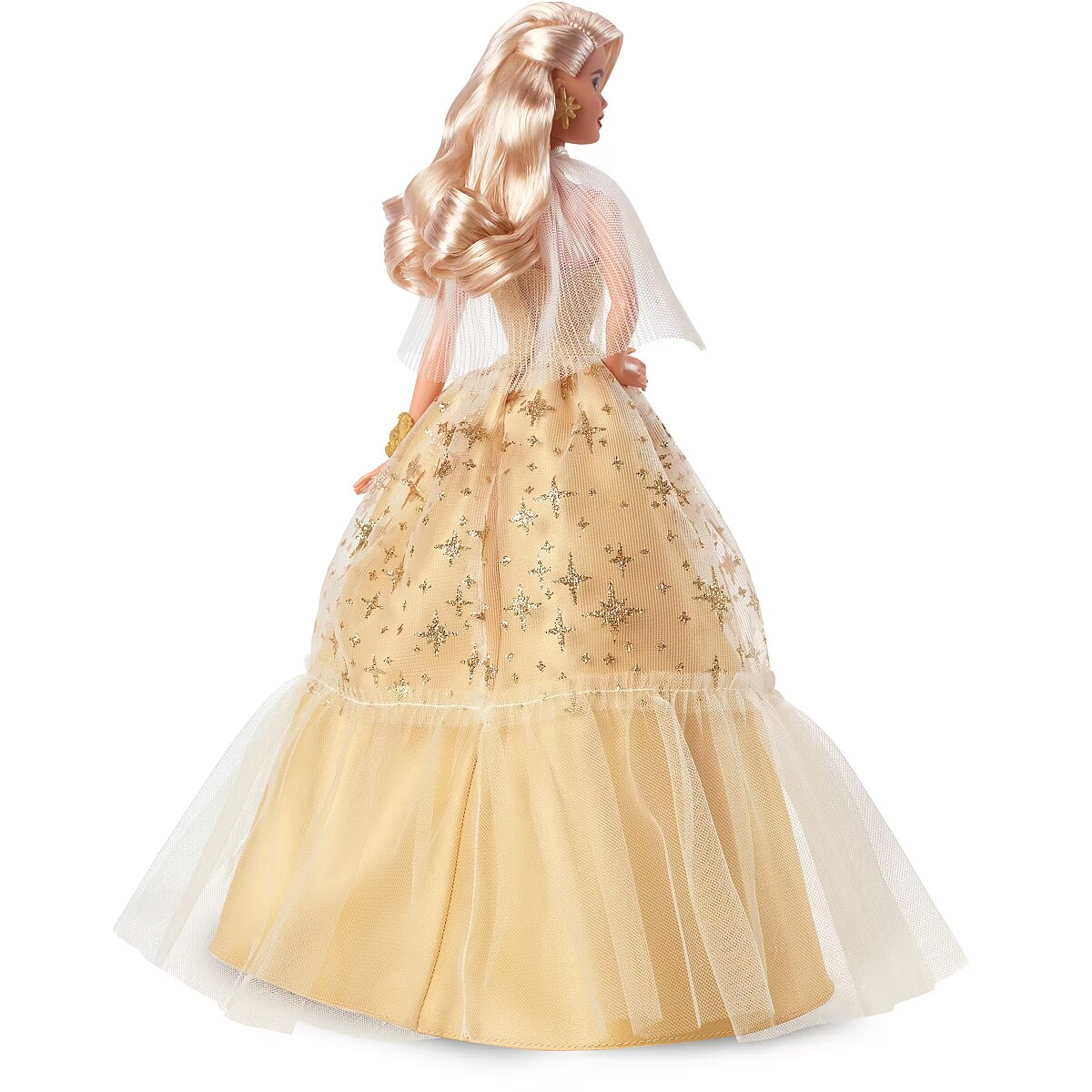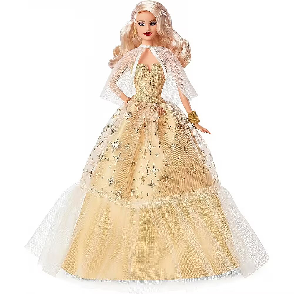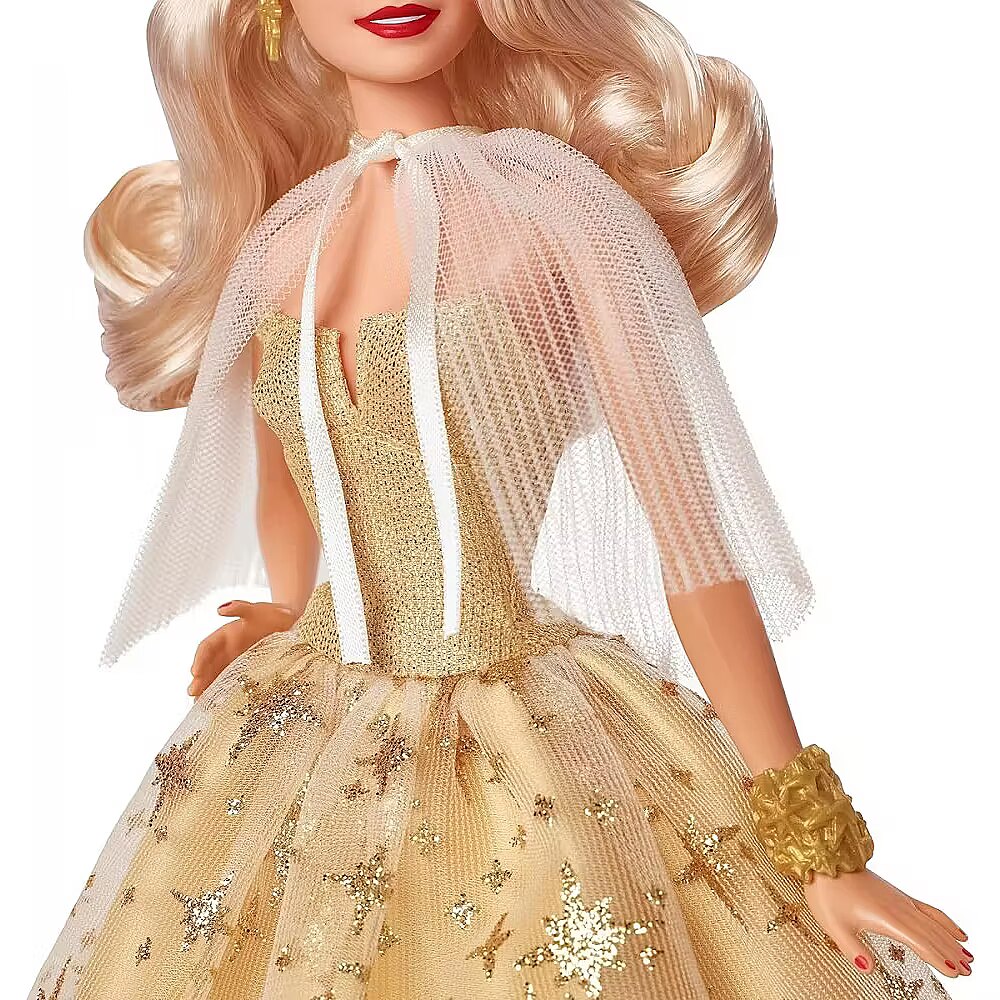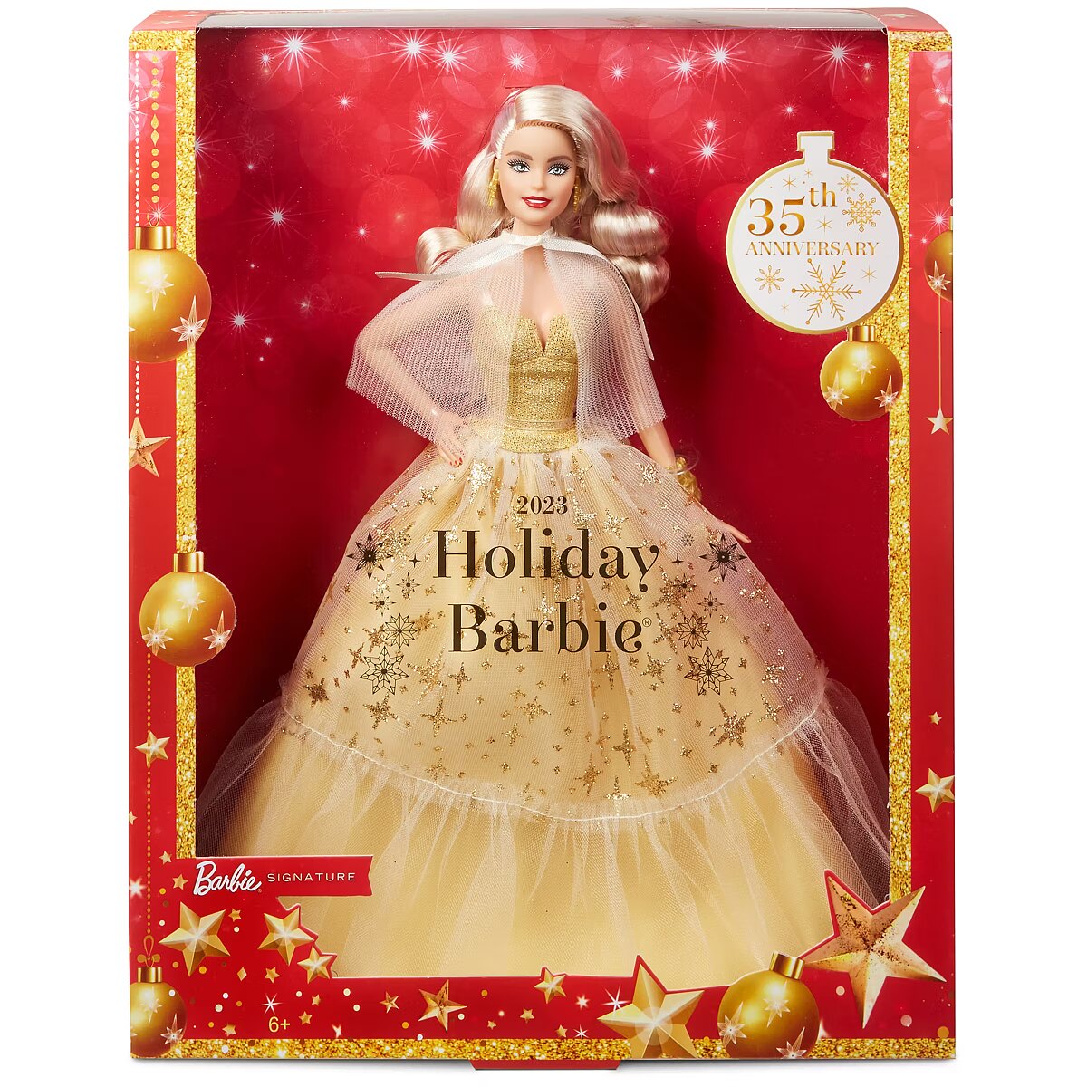 Description - Barbie Signature Holiday Doll with blond hair It's the time of year for giving and gathering with loved ones! The 2023 Holiday Barbie doll embodies the spirit of the season in a gorgeous golden gown that shimmers with starry details. The color gold has always had significance during the holidays as a symbol of warmth and light, making it the perfect color for this 35th anniversary edition of the iconic Holiday Barbie. In packaging that's ideal for display, this collectible doll makes a great gift for 6-year-olds and up. Includes doll stand and Certificate of Authenticity. Doll cannot stand alone. Colors and decorations may vary.