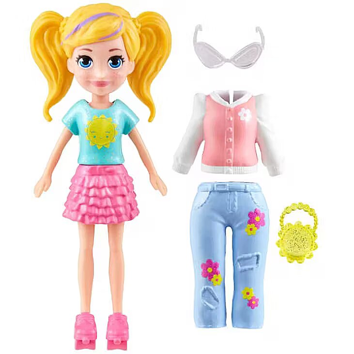 Description - Wyrażaj własny styl z małymi zestawami Polly Pocket, w których znajdziesz ubranka i akcesoria dla lalki. Każdy zestaw zawiera jedną lalkę i kilka elementów tematycznych, w tym ubranka z wyjątkowymi detalami. Młodzi wielbiciele mody mogą zebrać je wszystkie, aby dowolnie łączyć elementy i tworzyć niezapomniane stylizacje. Każdy zestaw sprzedawany oddzielnie, zależnie od dostępności. Kolory i elementy dekoracyjne mogą się różnić.